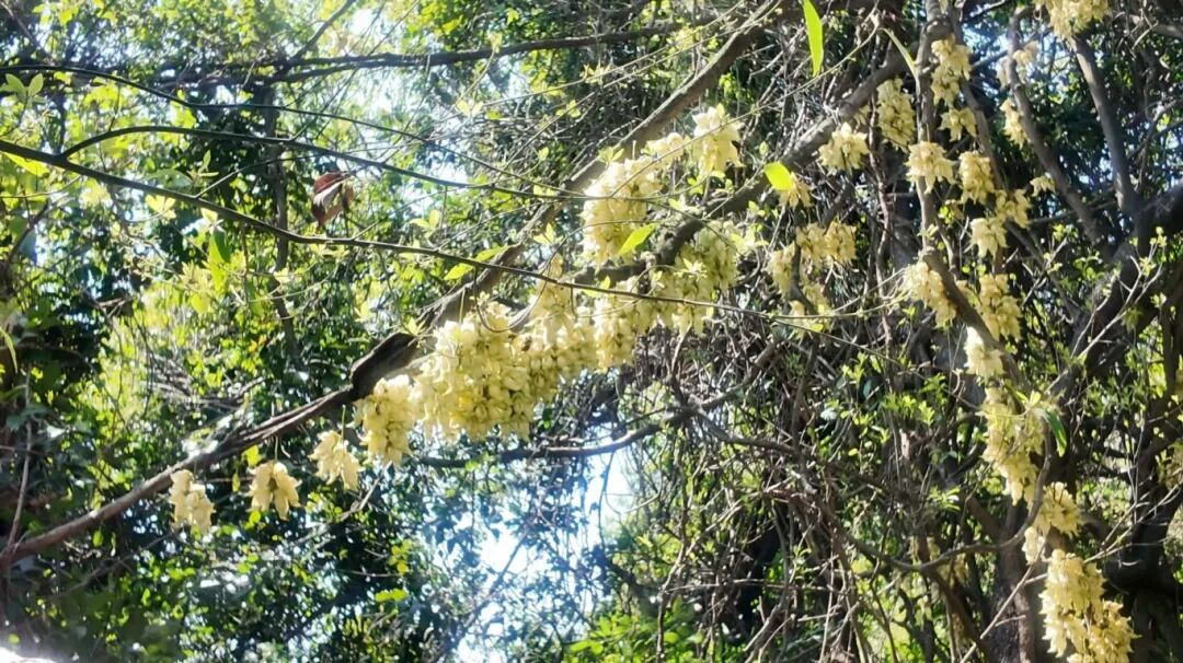 一串串黄绿色的禾雀花正在盛放