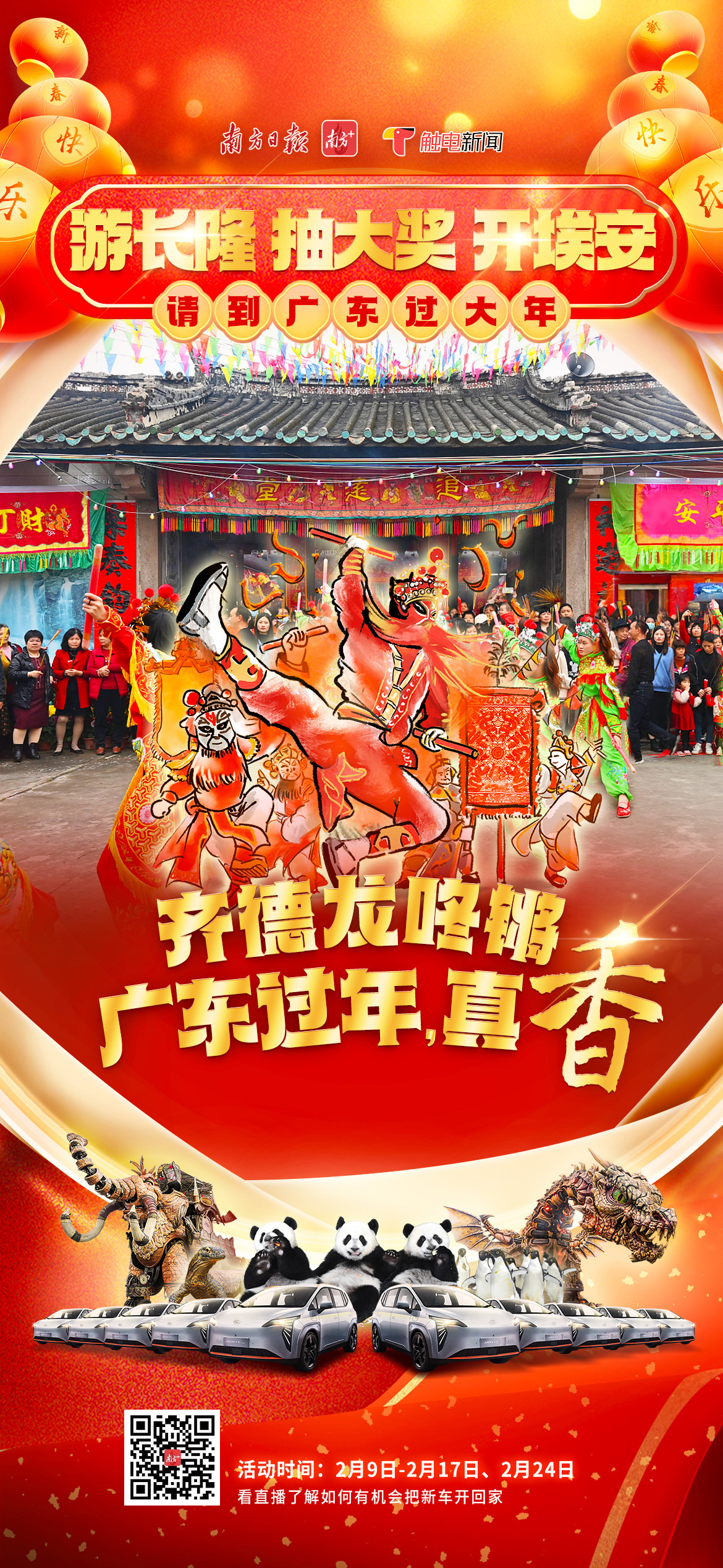 好人启好运,最暖是广东!2月9日至2月16日,由南方+、触电新闻主办的“请到广东过大年之游长隆、抽大奖、开埃安”活动连续开出八个大奖,江苏的项女士、新疆的屈先生、深圳的王先生等八位游客各获得一辆全新广汽埃安AION Y Plus智能纯电车的使用权。(精彩回顾)