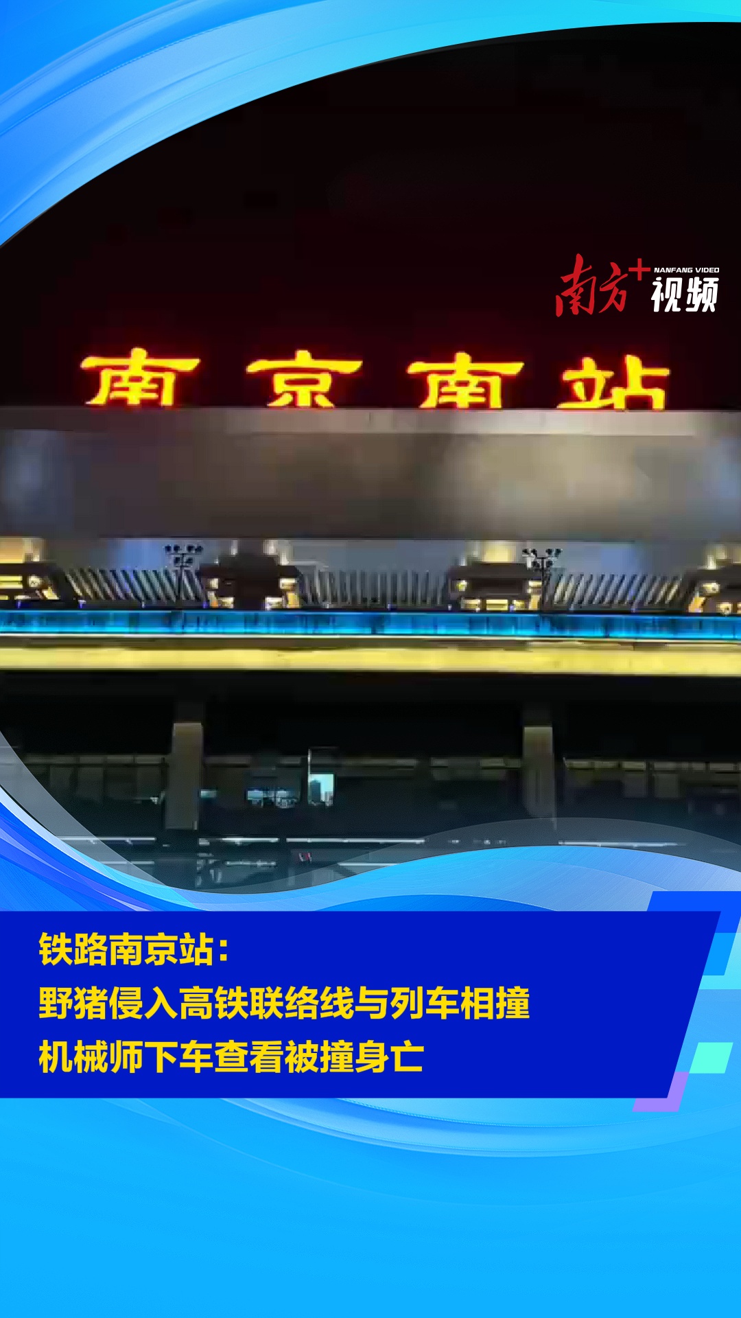 10月29日,铁路南京站发布情况说明:经初步调查,10月27日傍晚,一头野猪侵入南京南站至紫金山东站间的高铁联络线,与通过列车D5515次相撞,引发设备故障停车,造成途经南京南站的部分列车晚点。D5515次随车机械师下车排查处置故障过程中,被邻线限速通过的列车碰撞,经抢救无效不幸身亡。铁路部门表示沉痛哀悼,并向其家属深切慰问,正在全力做好善后工作。