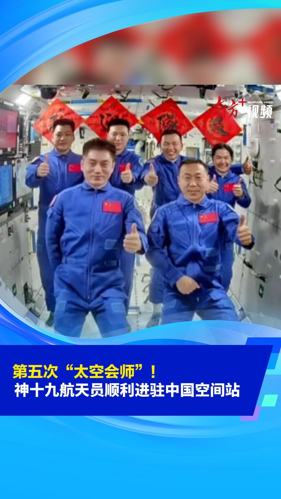 神舟十九号载人飞船入轨后,成功对接于空间站天和核心舱前向端口。今天中午,神舟十九号航天员乘组顺利入驻“天宫”,与神十八乘组会师天宫!详情>>