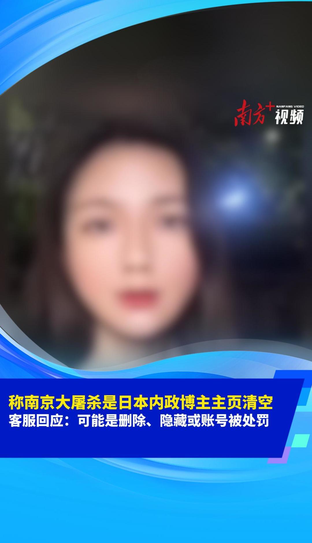 称南京大屠杀是日本内政博主主页清空,客服回应:可能是删除、隐藏或账号被处罚