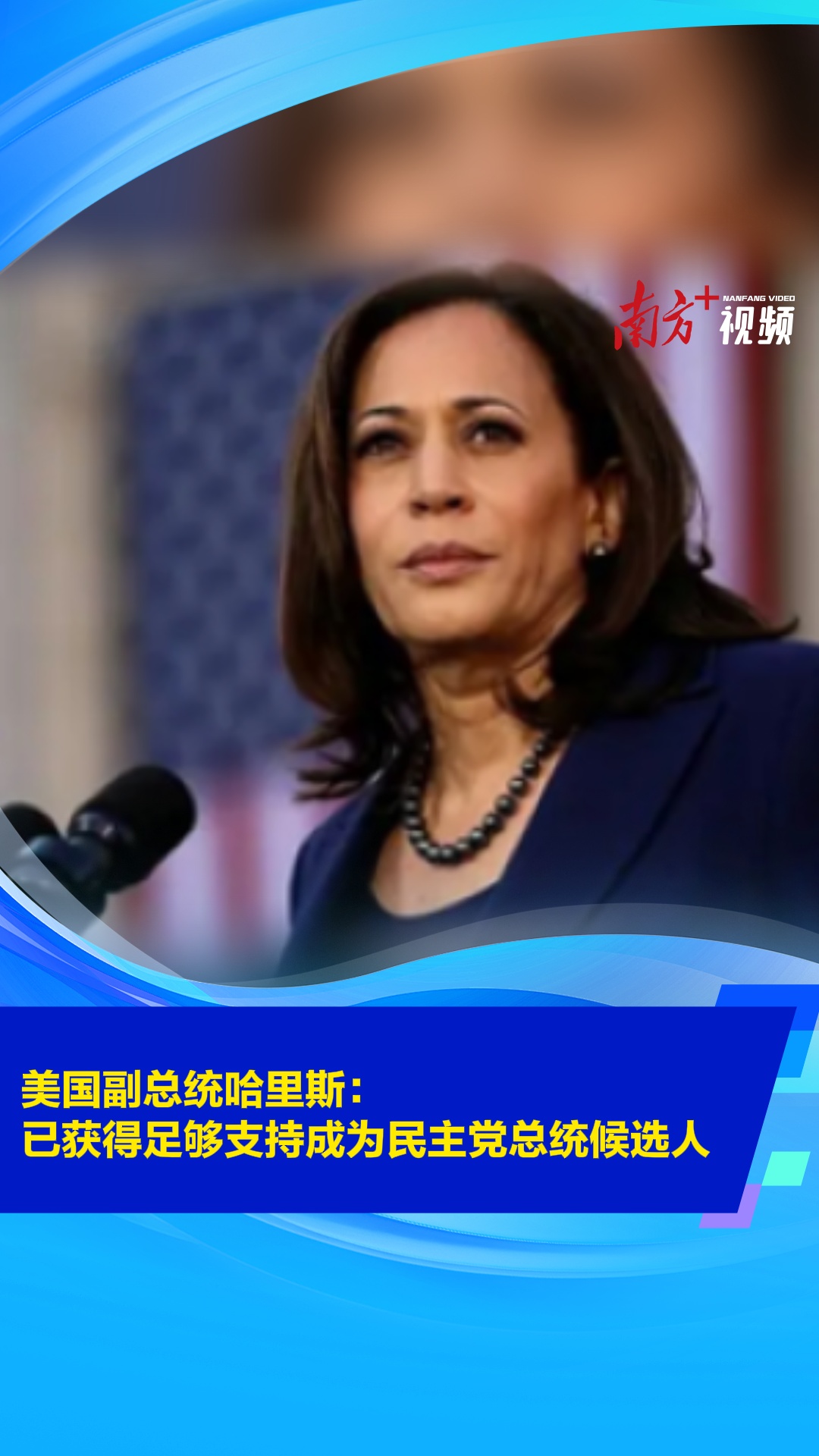 美国副总统哈里斯22日发表声明说,她已获得足够支持成为民主党总统候选人。