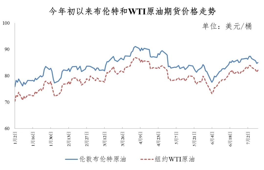 美国夏日出行旺季提振汽油消费,炼厂开工率增长,美国能源信息署数据显示,截至7月5日当周,原油、汽油库存均超预期下降。墨西哥湾飓风过境,市场担忧区域内原油生产可能受损,对短期油价形成支撑。此外,俄乌冲突胶着,以色列与黎巴嫩真主党之间持续交火,增加了原油的地缘政治风险溢价,也放大了市场对三季度供需关系偏紧的预期,投资机构纷纷上调今年油价预测值。多重因素影响下,国际油价上行至近三个月高位。