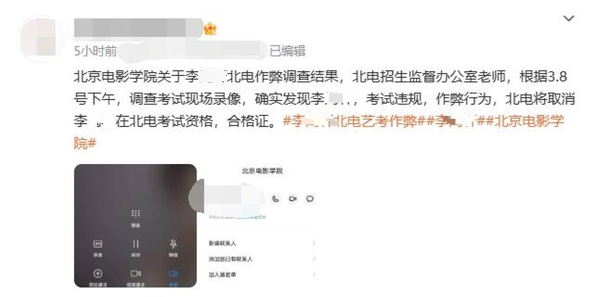 北京电影学院本科招生工作人员回应称,涉及学生隐私不便透露。