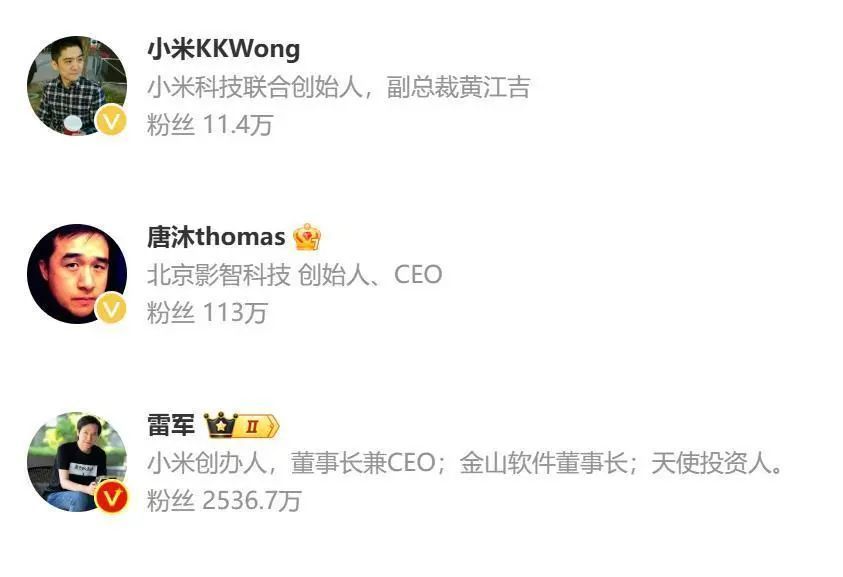 目前,该账号尚未发布任何内容,该账号关注的三个账号分别为:小米创办人、董事长兼CEO雷军;小米科技联合创始人、副总裁黄江吉;以及北京影智科技创始人、CEO唐沐。