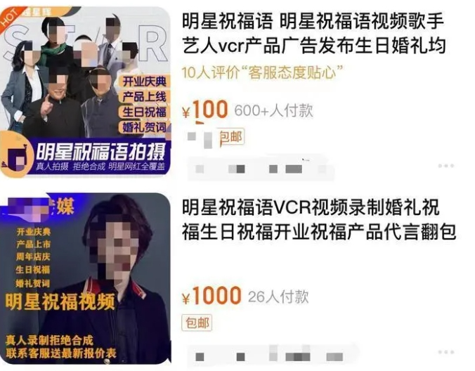 “明星、网红喊话+跳舞、仅需258” “生日喊话祝福视频” “定制表白举牌惊喜拍摄”……记者在不少网络电商平台输入“明星祝福视频”这一关键词进行检索后,搜索到几十页的商品,大部分“祝福视频”的标价在几十元到几百元不等。