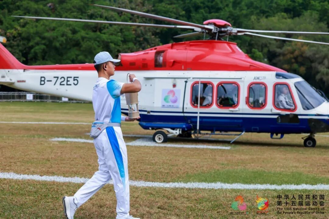 今天(11月2日),火炬从莲花山公园空中连廊启程,登上直升机空传至前海石公园,最终抵达前海国际会议中心。