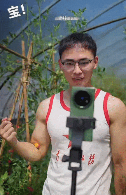 视频中,他或身着背心展现健硕肌肉夹破柿子,或在柿树下完成从中山装到紧身衣的创意变装。这些别出心裁的内容单条最高播放量达2000万,全网总播放量突破1亿+。