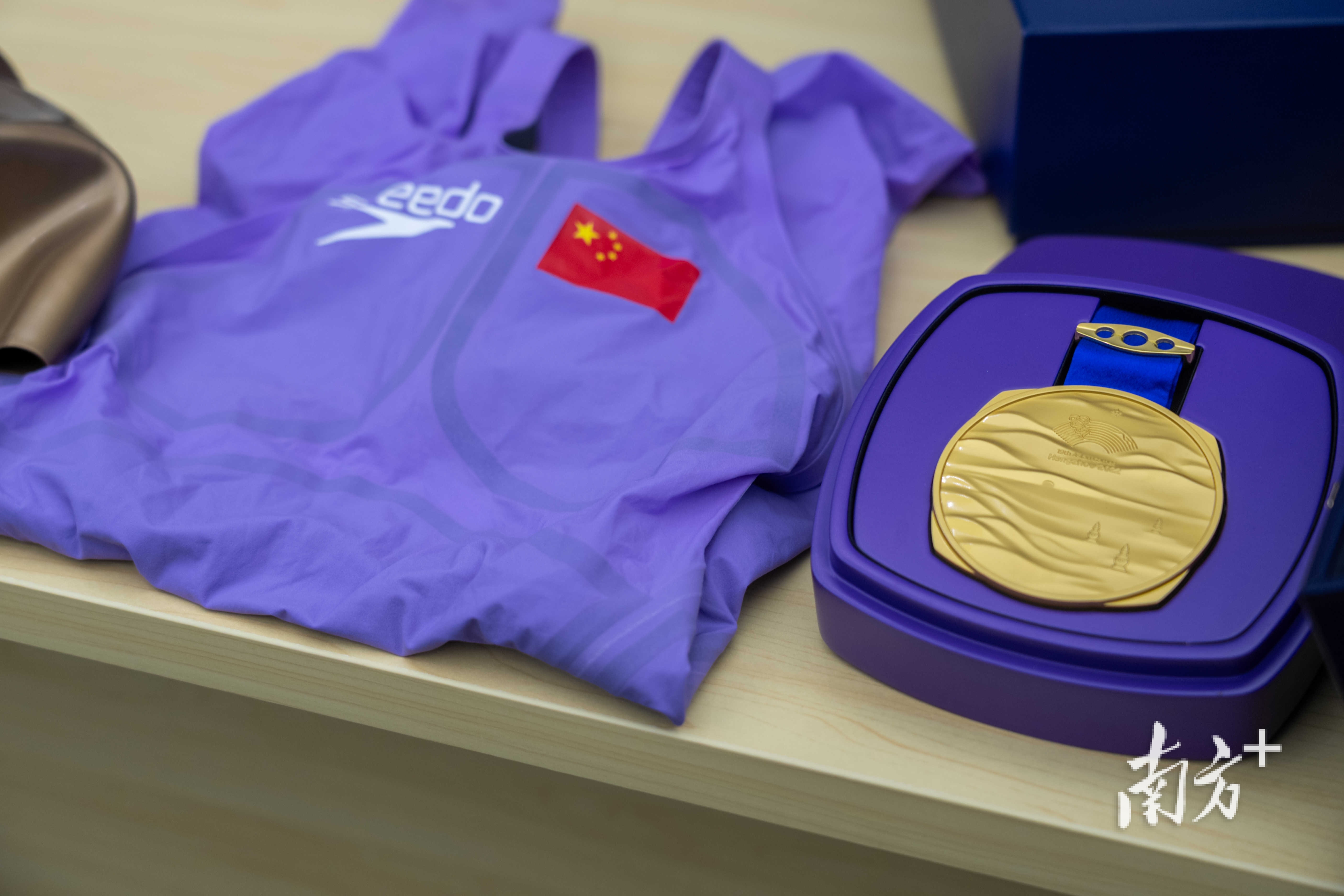 周嘉威和汪雪儿师徒二人也带来了自己的奖牌。周嘉威带来了4枚全运会金牌和2枚亚运会金牌,“我希望借助广东体育博物馆把广东体育和广东游泳的辉煌展现给更多市民,希望更多市民可以参加到游泳这个项目中。”今年将第4次征战全运会的汪雪儿也带来了杭州亚运会的金牌和巴黎奥运会的铜牌,以及她参赛使用的泳衣和泳帽,“我希望这些展品给广大市民和热爱体育的人,带来榜样的力量。让一些小朋友,感受竞技体育的魅力。”
