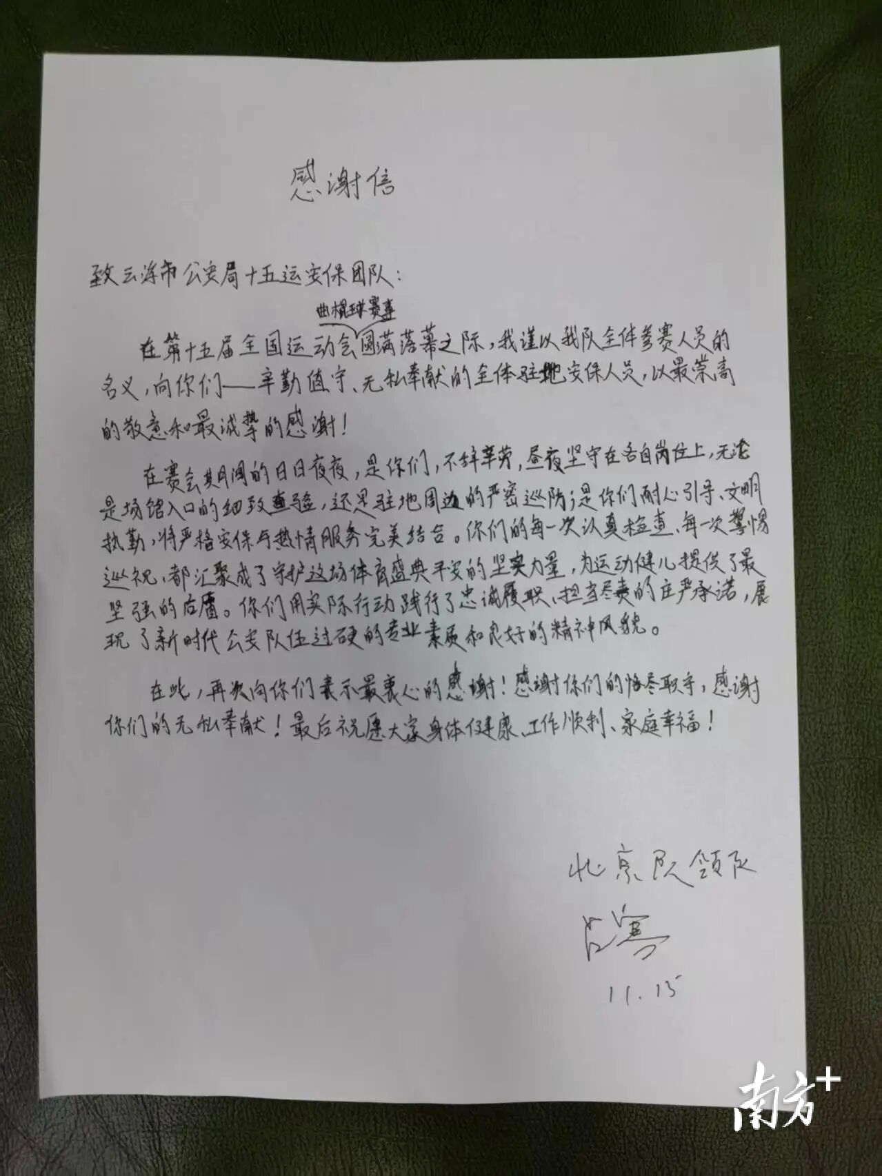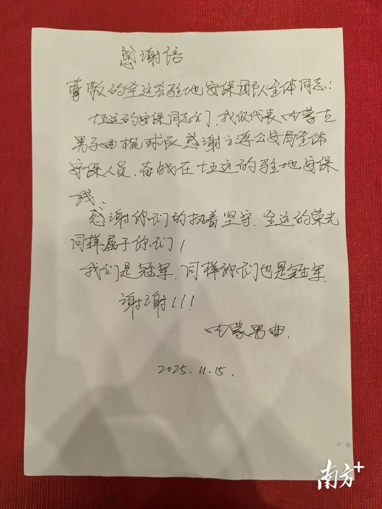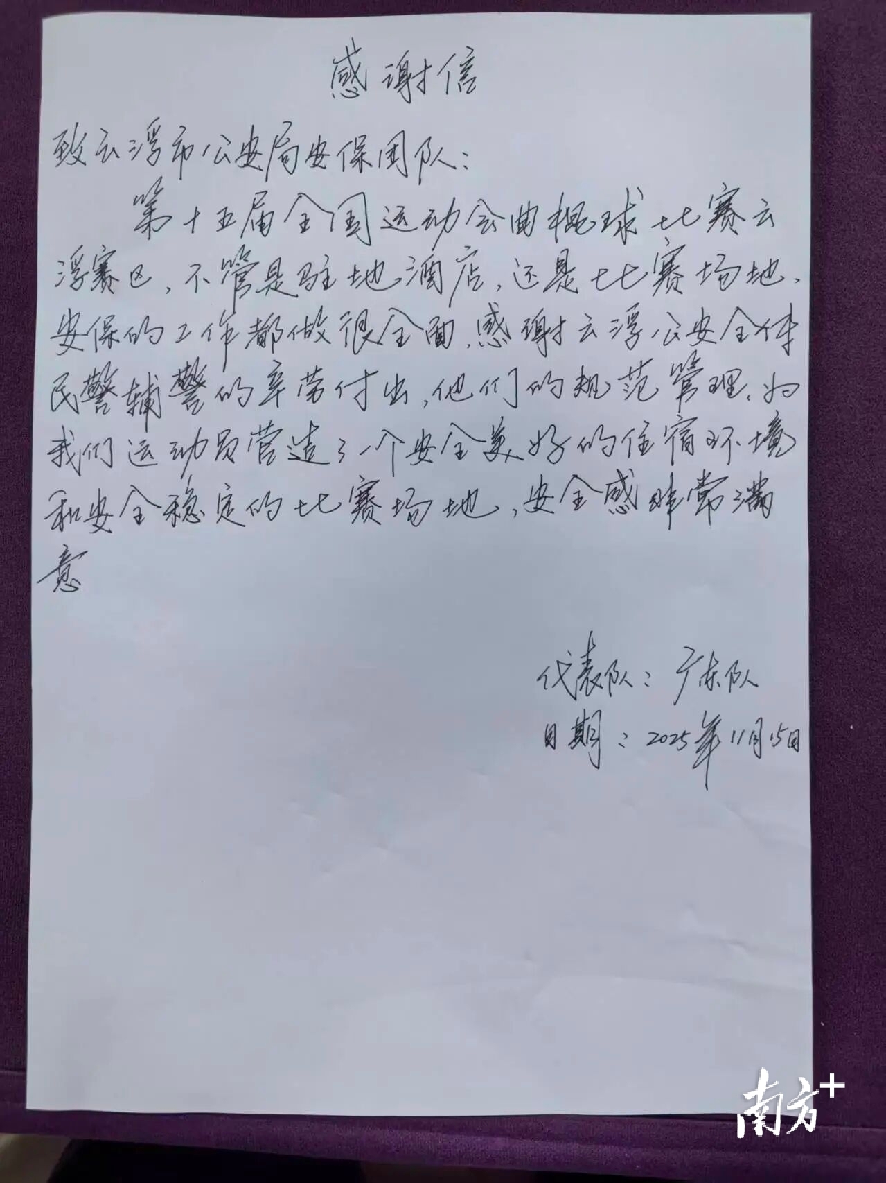 而所有的感谢信中,有一份温暖是双向奔赴的——全部曲棍球代表队手写感谢信点赞云浮公安。