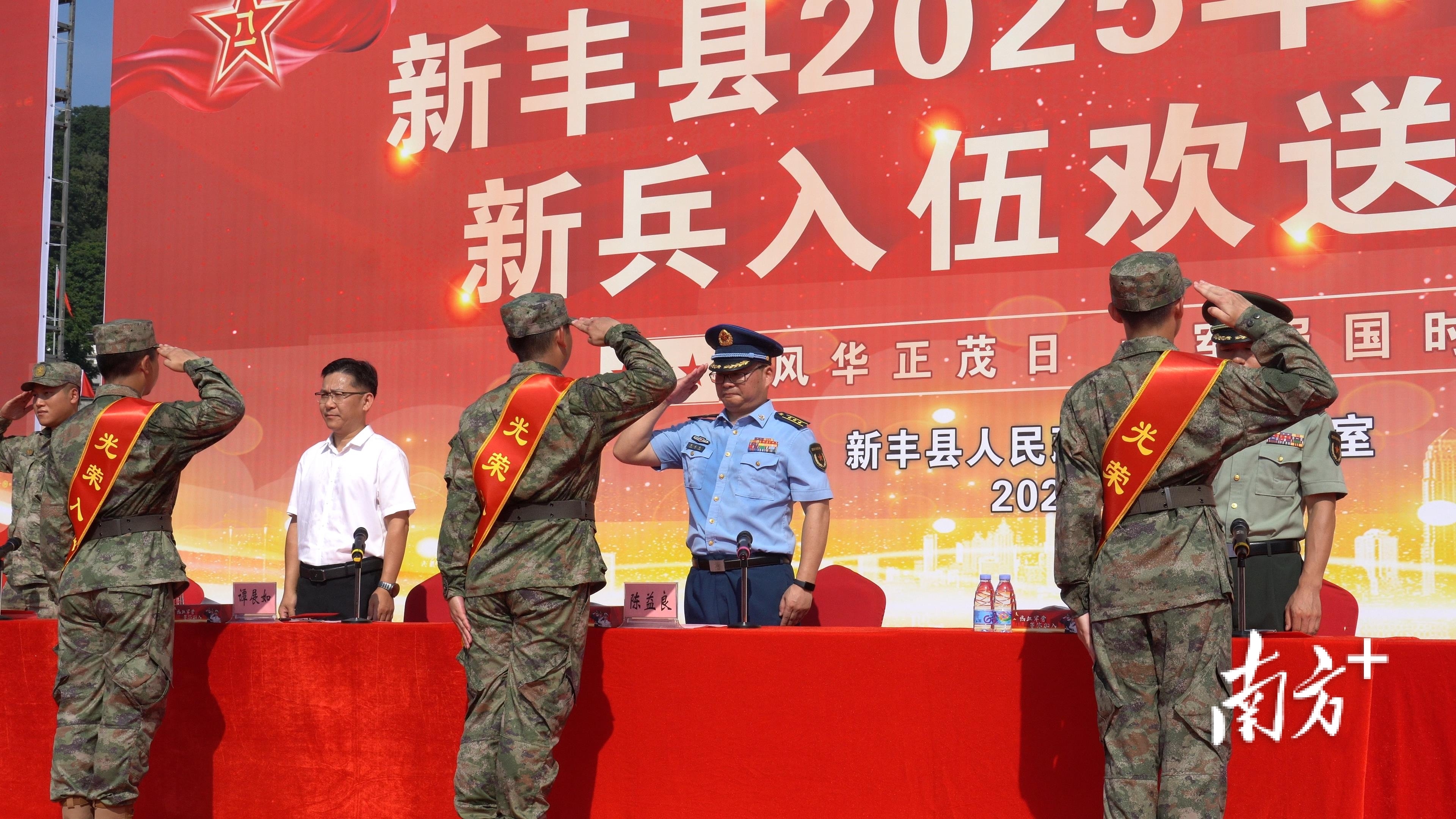 随后,陈益良宣读了新丰县2025年下半年新兵入伍通知。随后,与会领导为新兵颁发了入伍通知书,并向他们表示热烈祝贺。