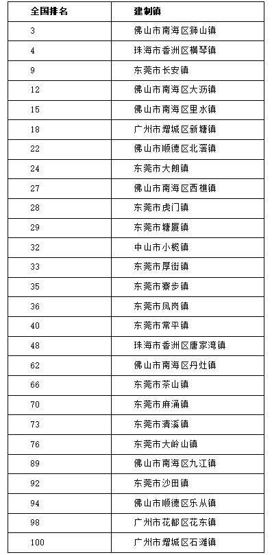 入围前100强的广东建制镇。