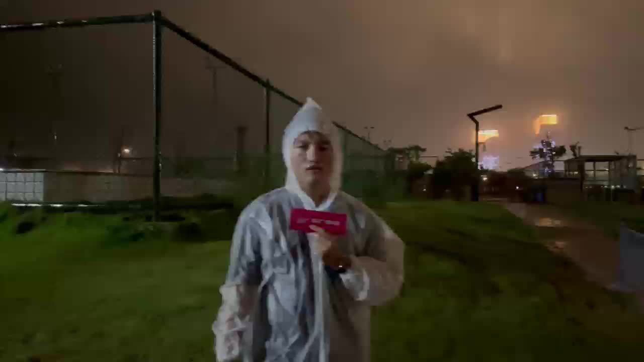 在现场,大雨直往记者的嘴巴里灌,记者话都说不清楚,眼睛也睁不开。