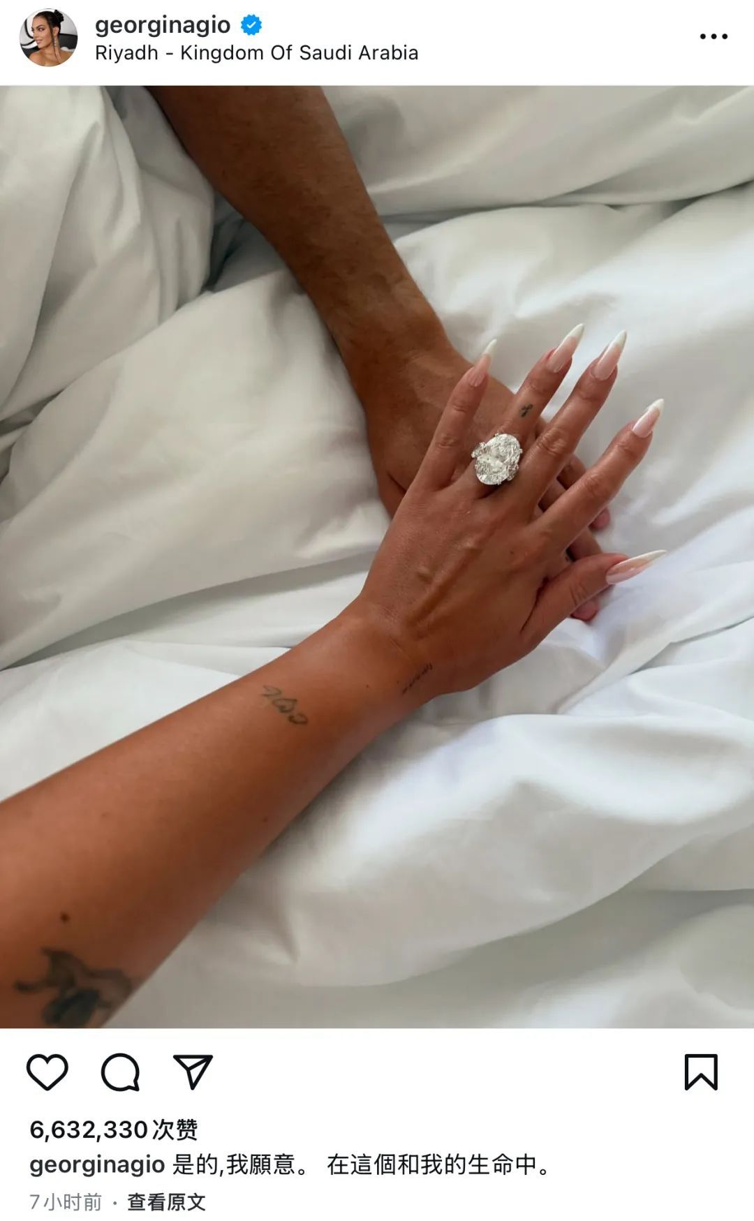 北京时间8月12日凌晨,与C罗相恋多年的女友乔治娜,在社交平台发文表示接受C罗的求婚。乔治娜晒出鸽子蛋钻戒,以及自己与C罗双手紧握的照片,幸福写道:“是的,我愿意,今生今世,生生世世。”