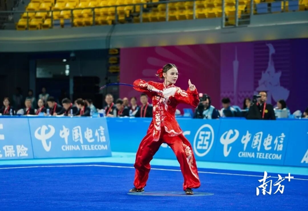 11月7日,第十五届全国运动会武术套路项目竞赛在南沙体育馆开赛。广东队金花梁壁荧退役五年复出,勇夺女子太极拳太极剑全能项目的铜牌。赛后,她的双眼饱含泪水:“在舞台上的时候,我感觉自己从小到大的梦想从来没有离开过。”