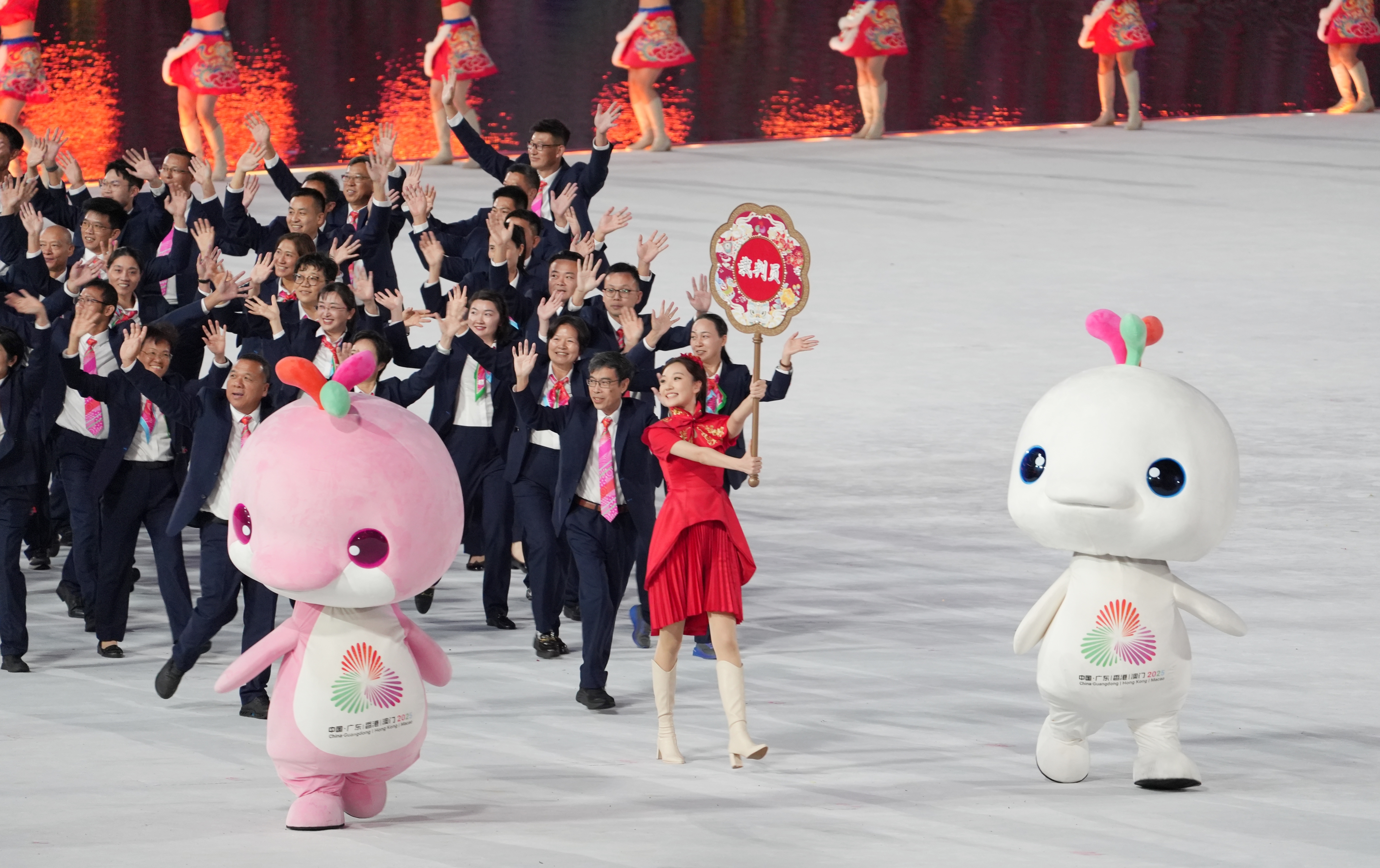 粤港澳三地首次携手承办全运会,当东道主广东、香港、澳门体育代表团相继入场时,全场气氛达到了首个高潮。