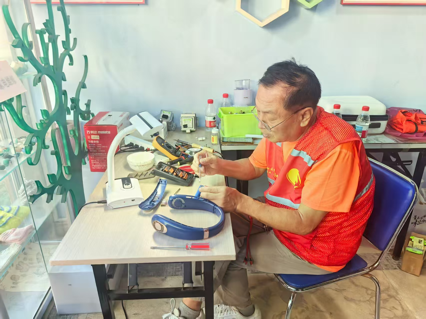 小到英国品牌的吹风机,大到德国产的电饭煲,这些原本要耗费高额维修费的进口家电,在李湘生的潜心钻研下,总能找到症结。往往只需居民自购几块钱的零部件,经他一双巧手拆解、调试、替换,便能重焕生机。这份热忱与坚守被社区看在眼里,不仅专门为他腾出一间专属工作室,还配置了部分维修工具,为这份暖心事业保驾护航。