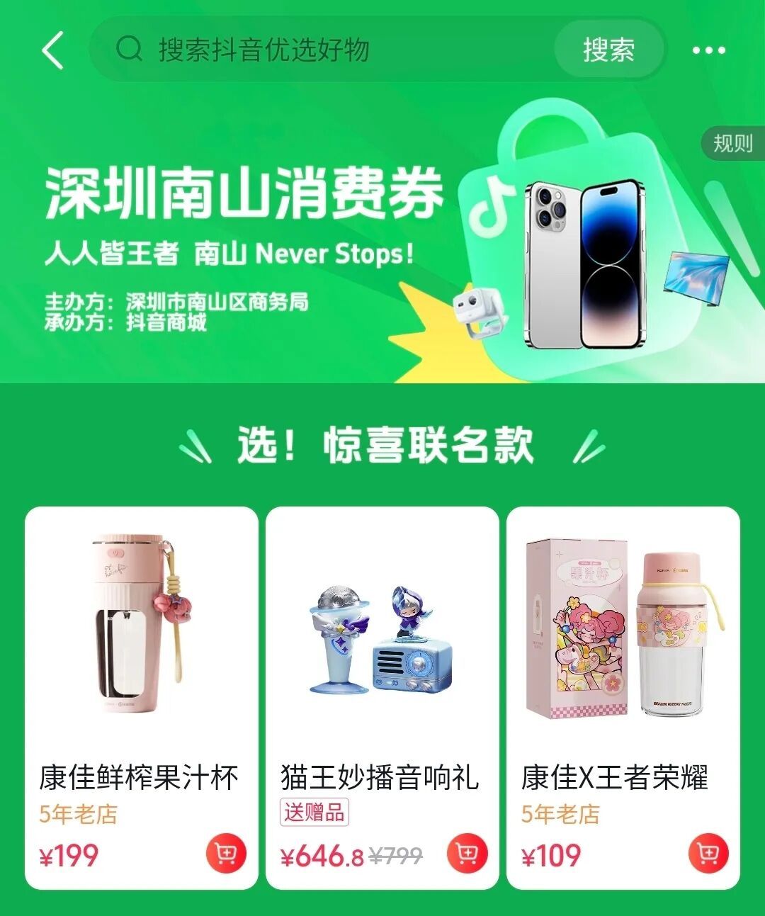 南山区商务局还携手抖音商城