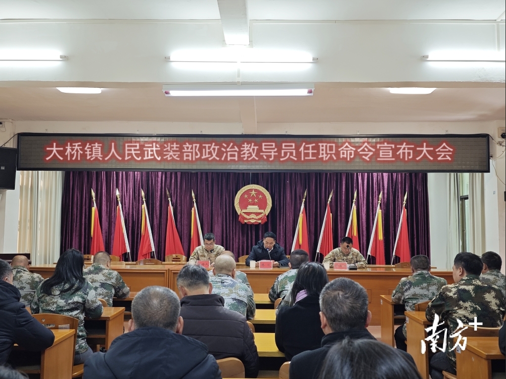 近日,乳源瑶族自治县大桥镇举行镇人民武装部政治教导员任职命令宣布大会。县人武部上校政治委员张孝明率队到会指导,大桥镇党政领导、各村(社区)党支部书记及民兵连长共同参会。