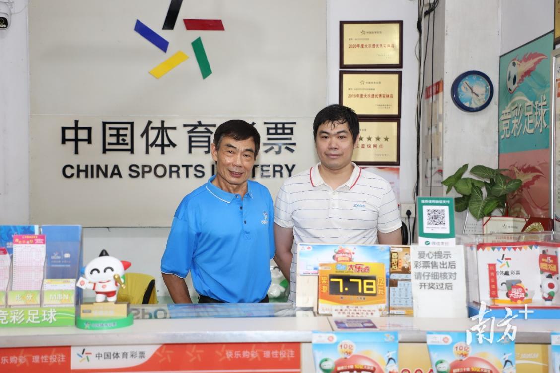 佛山体彩代销者父子:陈兆汉(左)、陈国殷(右)。