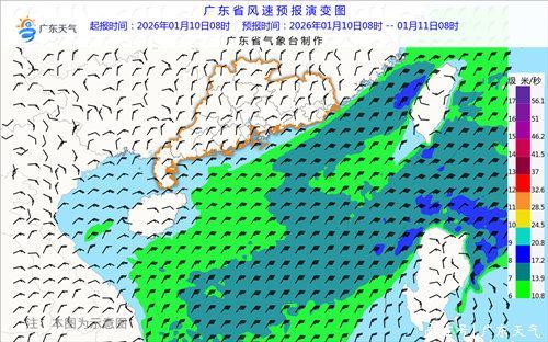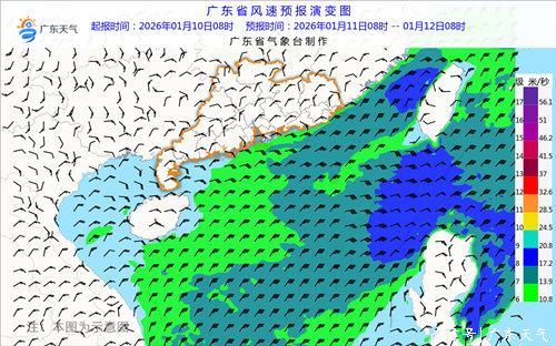 11日,我省中东部海面东北风6~7级阵风8级,粤西海面东北风5~6级阵风7级;