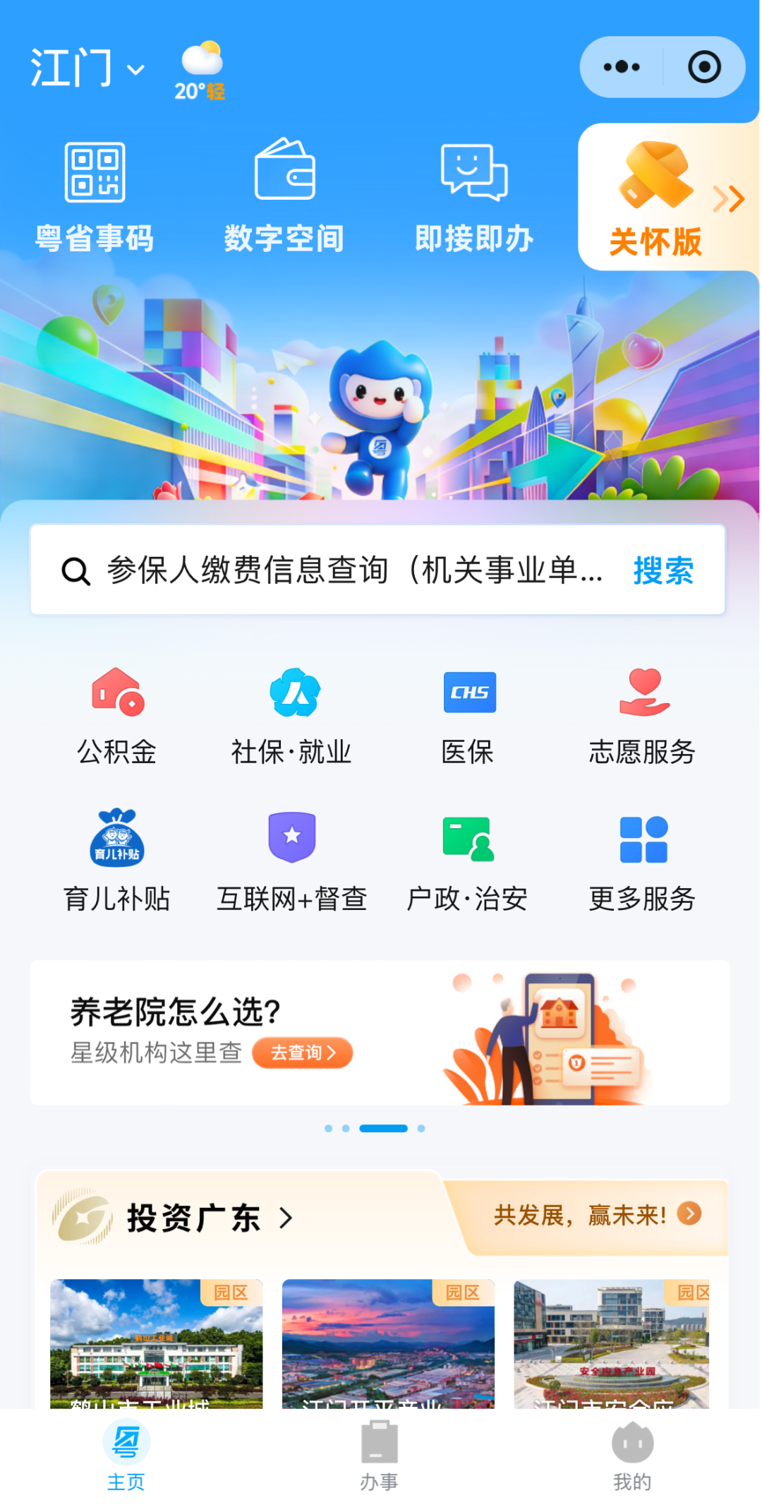 扫描下方二维码打开“粤省事”微信小程序,或下载“粤省事”APP,指尖轻松办理公积金、医保、社保等各类高频服务,还可进入数字空间授权出示电子证照哦。