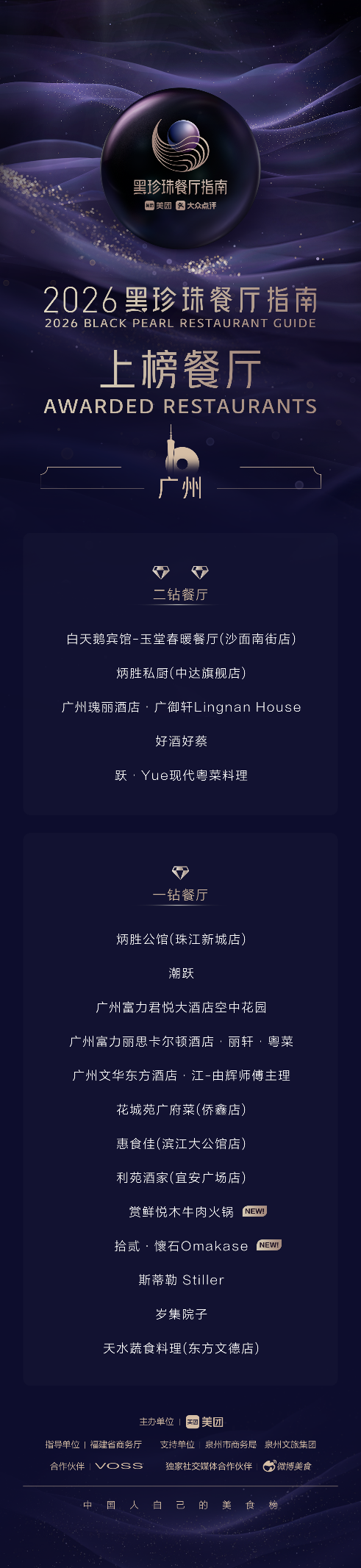 1月27日,“黑珍珠餐厅指南”举办了2026黑珍珠餐厅指南发布暨颁奖盛典,中国内地32城的263家上榜餐厅正式揭晓,覆盖 45 个菜系,7家餐厅成功升钻。据南方+记者在2026黑珍珠餐厅指南中了解到,广东共有40个餐厅上榜,覆盖广州、深圳、汕头、顺德。今年广东有6家新上榜餐厅,分别是广州2家,深圳4家。