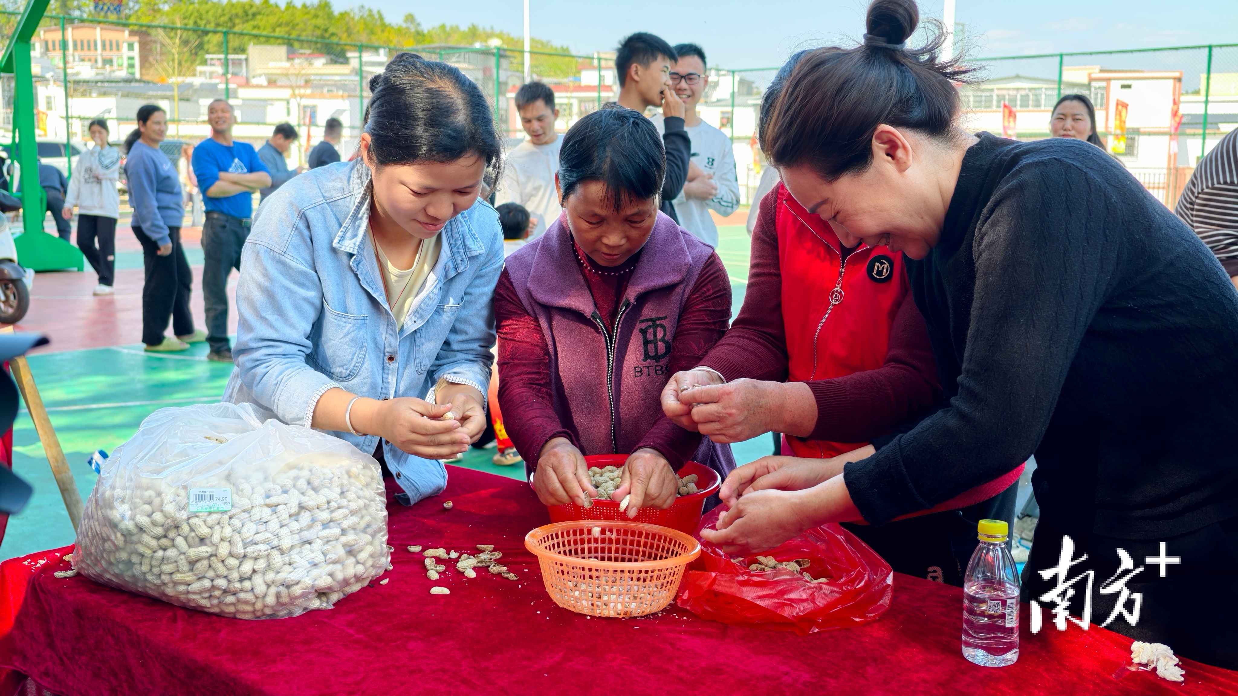 下午14时,趣味农乐活动火热开启,所有农乐活动均免费向群众开放,真正实现“全民参与、全民共享”。其中,“五谷丰登套圈”“剥花生比赛”“蔬果猜猜乐”三大特色项目兼具农耕趣味与互动性,吸引众多家庭踊跃参与,在欢声笑语中,群众进一步加深对龙母特色农产品的了解。