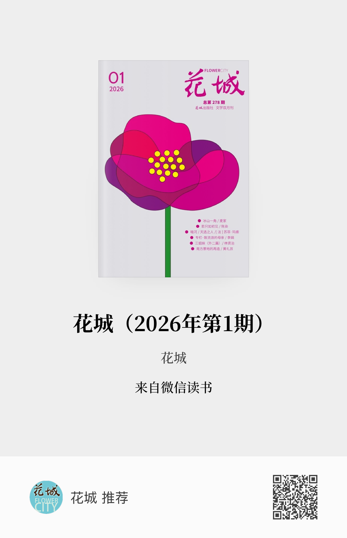 《花城》杂志2026年第1期已正式上线微信读书平台。受访者供图