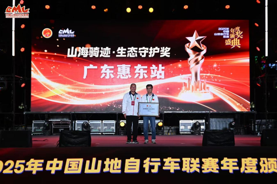 9月21日晚,2025年中国山地自行车联赛总决赛暨年度颁奖盛典在云南省文山壮族苗族自治州西畴县举行,广东惠东站凭借在赛事举办与生态保护协同发展中的突出表现,荣膺“山海骑迹·生态守护奖”。这份荣誉既是对惠东站赛事组织工作的高度认可,更是对惠东以“骑行”为纽带践行生态保护理念的充分肯定。