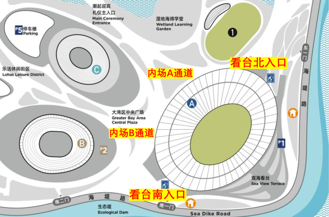 万博(番禺)、天河体育中心方向:由北验票口经北三门、北六门至二十一涌路、P8停车场排队上车。