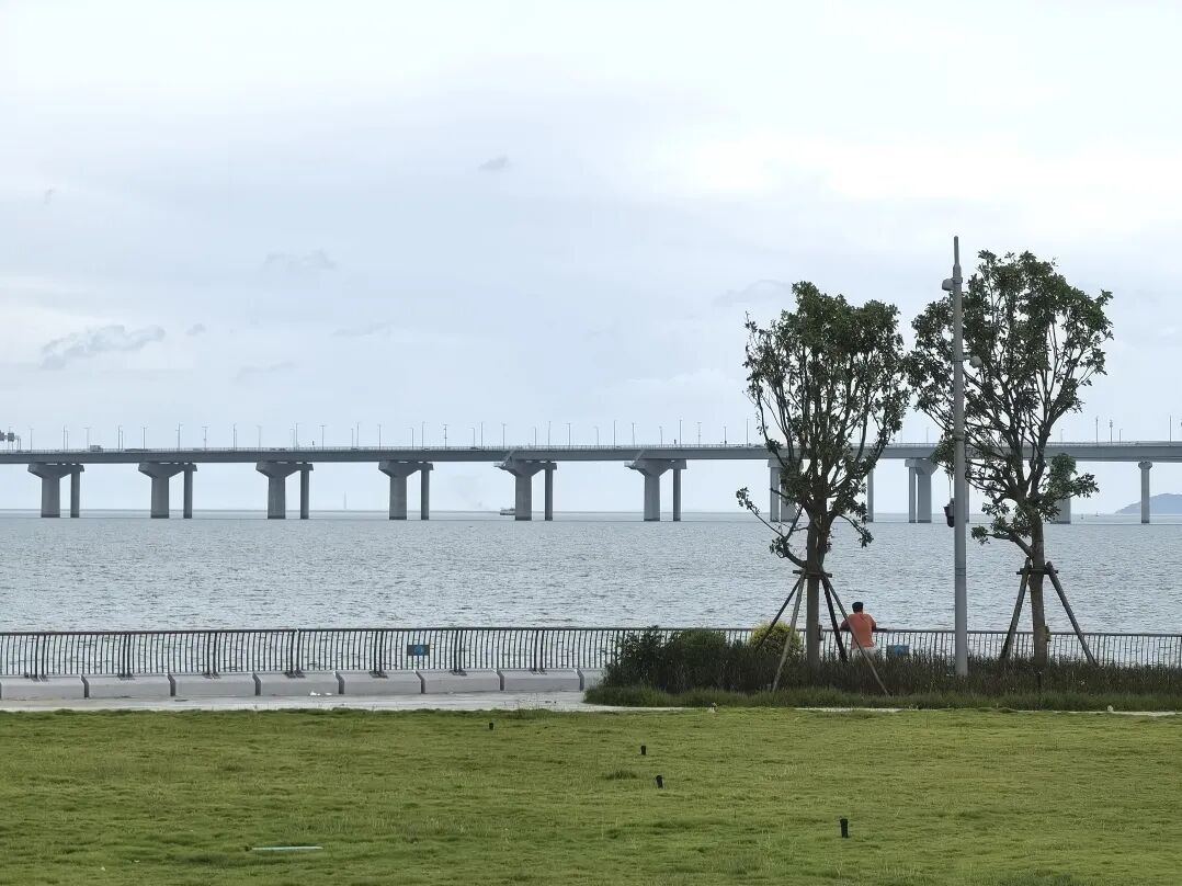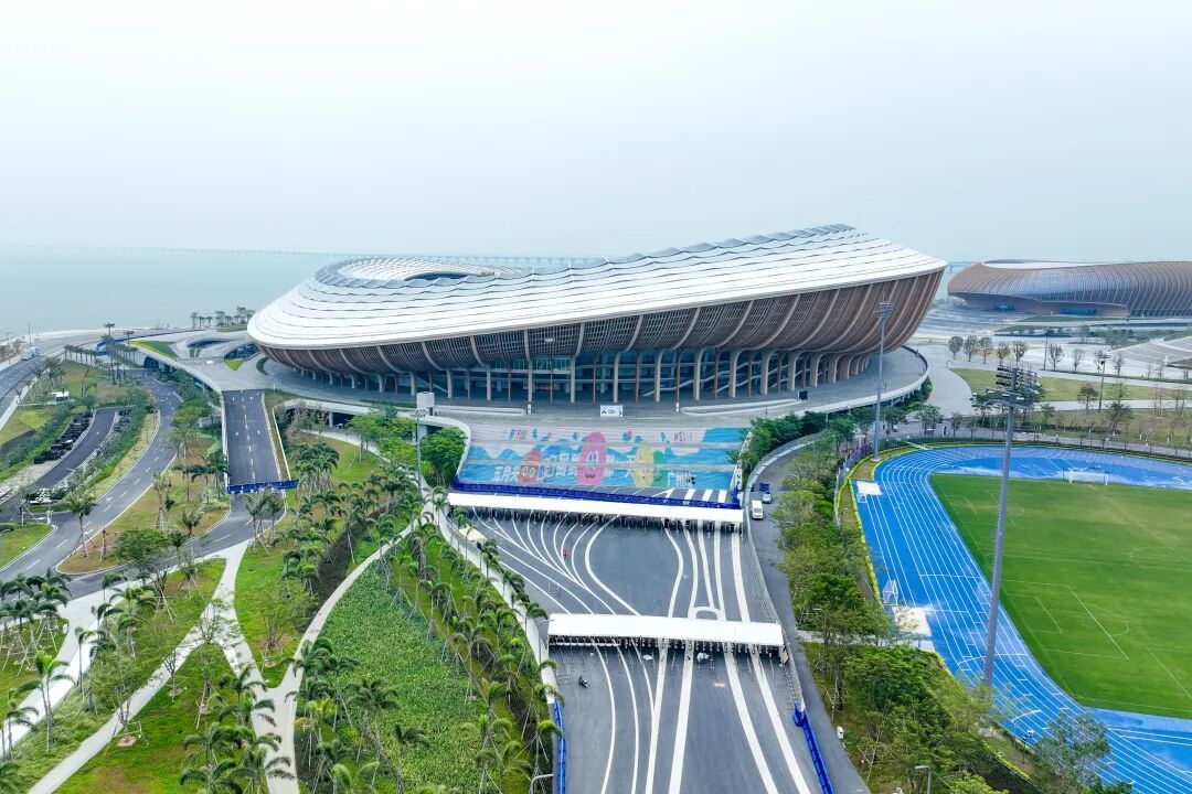 大湾区文化体育中心三面临海,站在此处,伶仃洋的碧波万顷与深圳前海、深中通道的雄姿可尽收眼底,偶尔还有候鸟掠过。