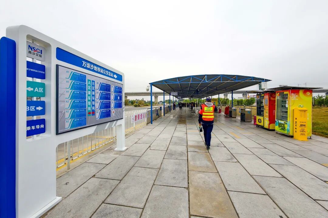 万顷沙、蕉门方向:由北验票口经北六门至新港大道上客点排队上车,该线路途经万顷沙地铁站,终点为蕉门中心区南沙万达广场。