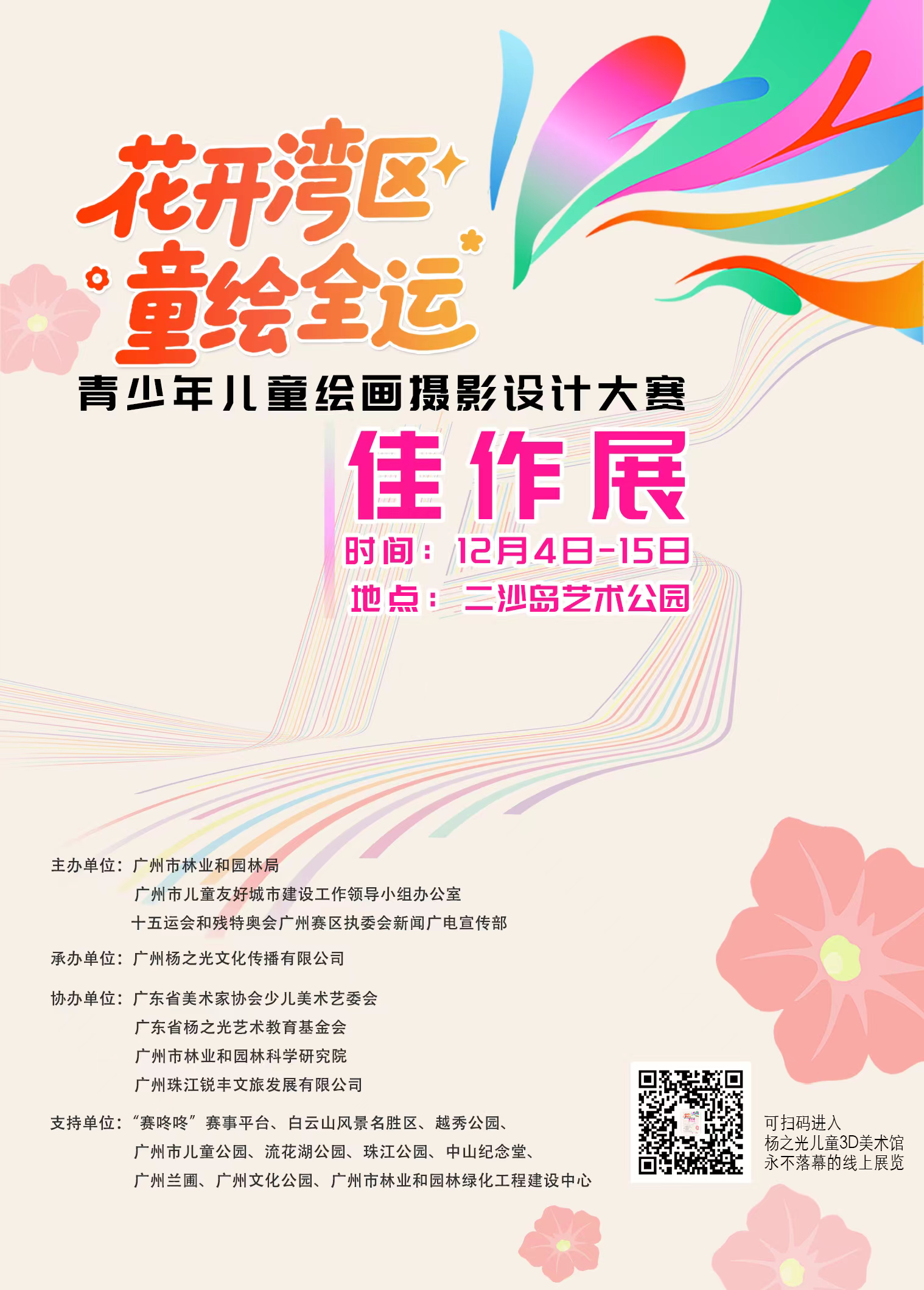 日前,为迎接十五运会和残特奥会,展现广州“千年花城”城市品牌及绿美广州生态建设成果,广州林业和园林局、广州市儿童友好城市建设工作领导小组办公室、十五运会和残特奥会广州赛区执委会新闻广电宣传部共同主办“花开湾区 童绘全运”青少年儿童绘画摄影设计大赛系列活动,旨在通过青少年儿童的视角与画笔,描绘绿美广州、活力湾区的精彩,传递自然之美、运动之趣与城市之兴,营造全民参与的热烈氛围和全城浓厚艺术氛围。