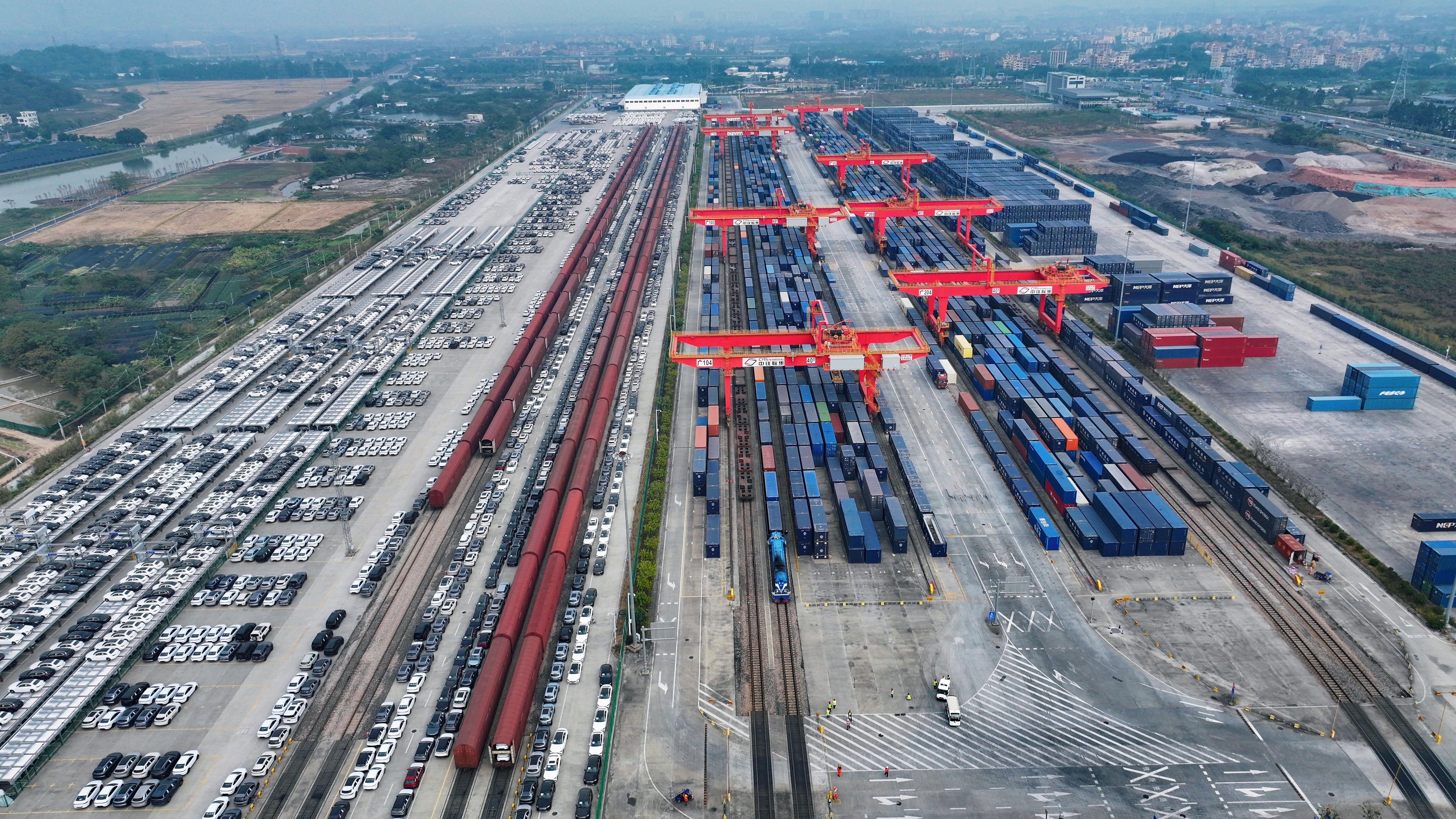 拓展“班列+”业态,赋能实体经济。特种货物运输是广州国际港的一大亮点。中铁特货广州分公司广州国际港物流基地主任许丁宜介绍,他们扮演着“汽车产业链上的移动仓库”和“出海快车道”的角色。“我们建立了专业化的运输保障团队,依托‘国铁集团-路局-特货公司’全路的三级运营调度系统,实现广州国际港至全国往返高效互通。”许丁宜说。