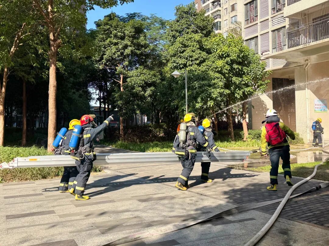 本次演练精心设置应急指挥中心、灭火行动组、疏散引导组、通讯联络组、水电保障组、警戒保卫组六大专项工作组,分工明确、协同联动,模拟居益花园10栋3层因电动车违规入户充电引发火灾的场景。