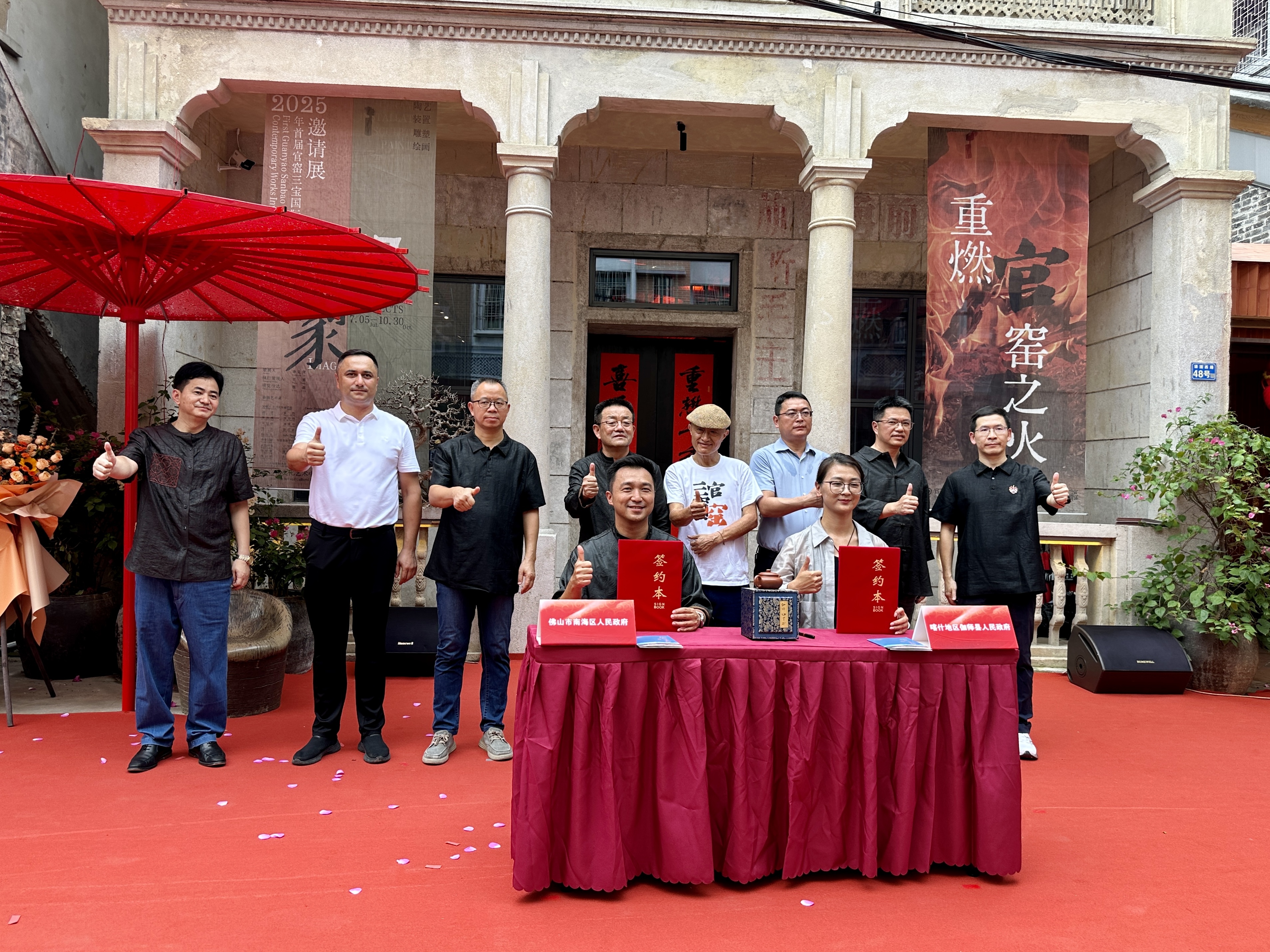 开幕仪式上,官窑文化艺术中心、李见深国际陶艺工作室、官窑三宝空间营造社、全球艺术家南海驻地中心、狮山镇新时代文明实践点“五牌同揭”,寓意深远。而一场在该中心的烧制电窑室举行的开窑仪式,更象征着千年官窑在新时代的涅槃重生。