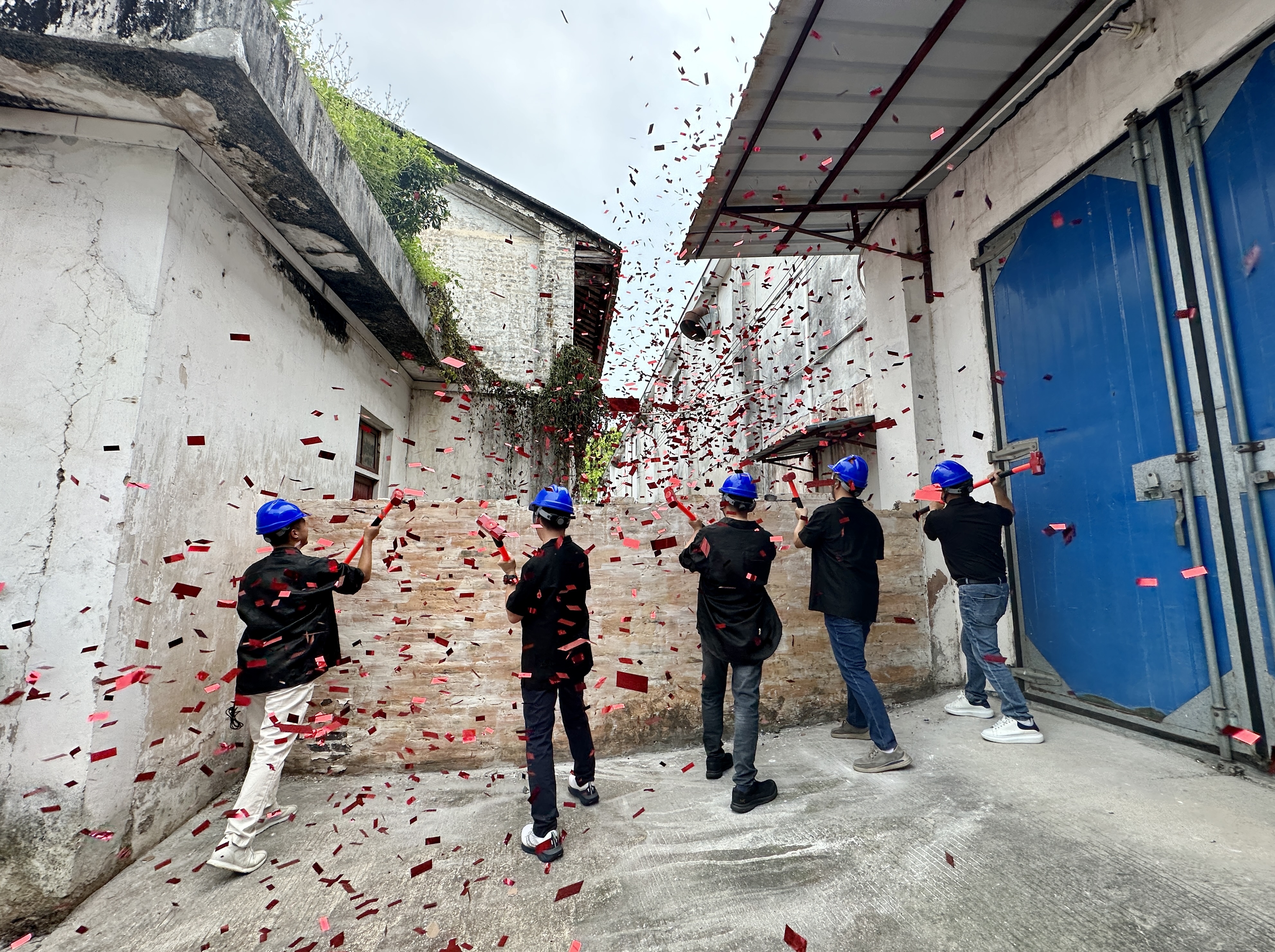 当日下午,随着主礼嘉宾挥锤打通物理空间、敲响象征开工的锣声,“南粤古驿・十里官窑”官窑水泥厂及马步头一期改造项目先行启动区建设正式拉开帷幕。