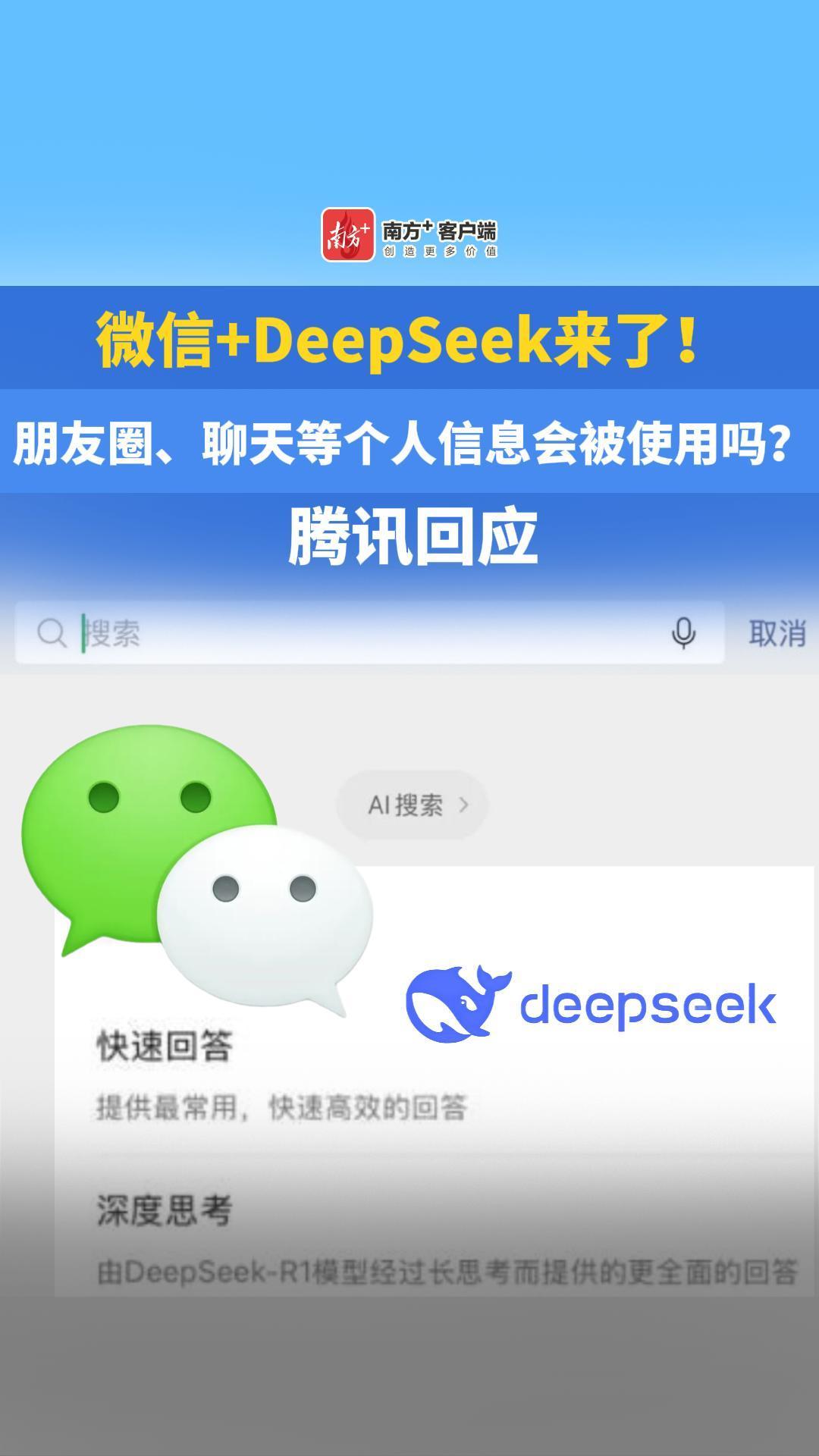 微信+DeepSeek来了!朋友圈、聊天等个人信息会被使用吗?腾讯回应
