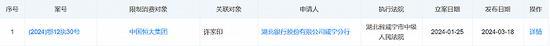 天眼查App显示,3月18日,因未按执行通知书指定的期间履行生效法律文书确定的给付义务,许家印及中国恒大新增一则限制消费令,涉及借款合同纠纷案件,申请人为湖北银行股份有限公司咸宁分行。 天眼风险信息显示,中国恒大目前存在11条被执行人信息,被执行总金额超85亿元。此外,恒大地产集团有限公司存在数百条被执行人信息,被执行总金额达数百亿,恒大集团有限公司也存在上百条被执行人信息,被执行总金额超百亿。