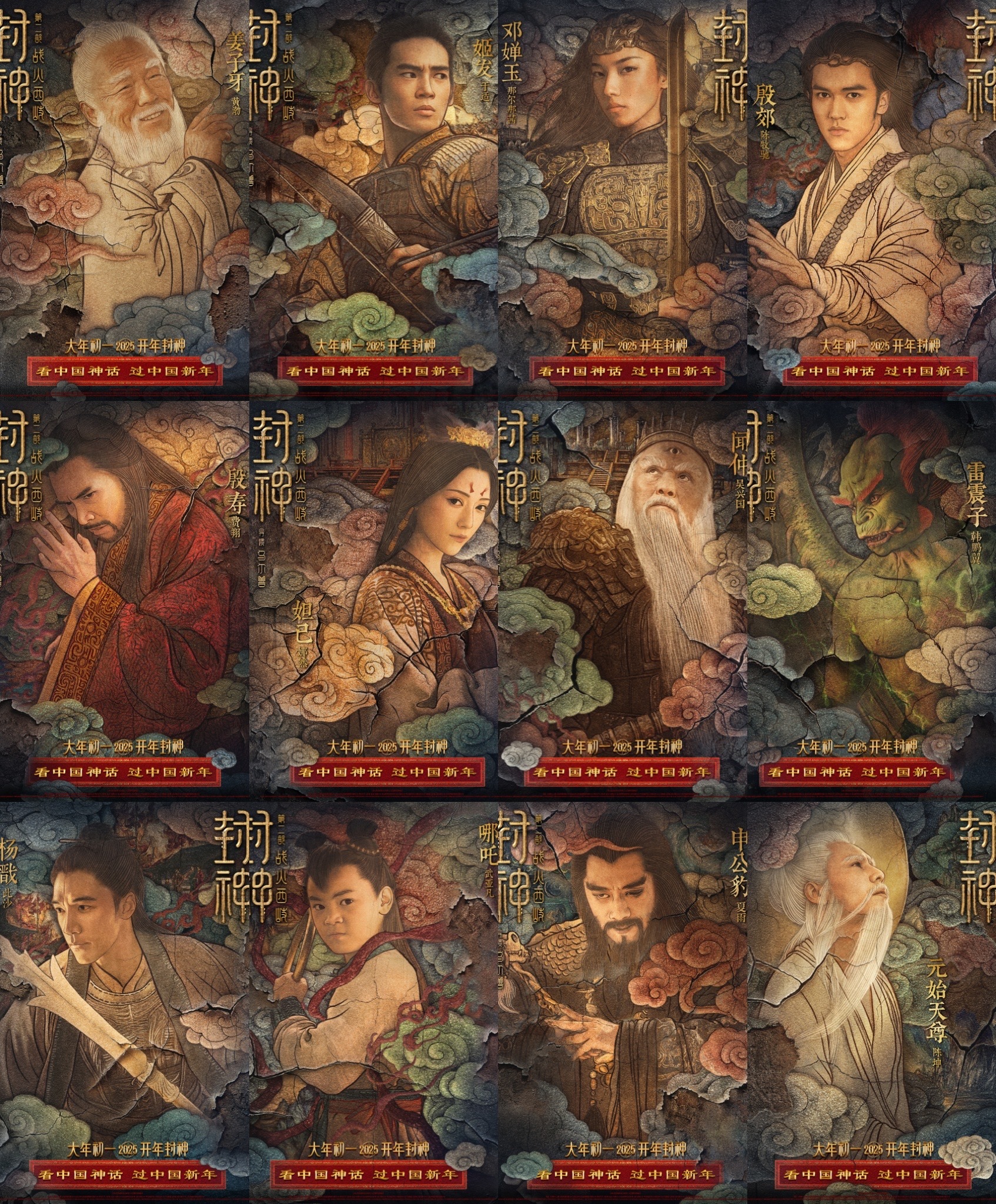 与预告一同发布的角色海报大气典雅,纹饰繁复精美,色彩浓郁深沉,宛如一幅幅尘封已久的壁画,散发着浓郁的中国传统文化气息,尽显神话史诗的磅礴气势。三千年前的神话人物仿佛从画中走出,跃然眼前。