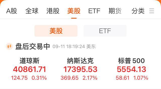 截至收盘,美股三大指数集体收涨,纳指涨2.17%,创8月16日以来最大单日涨幅;标普500指数涨1.07%,道指涨0.31%。