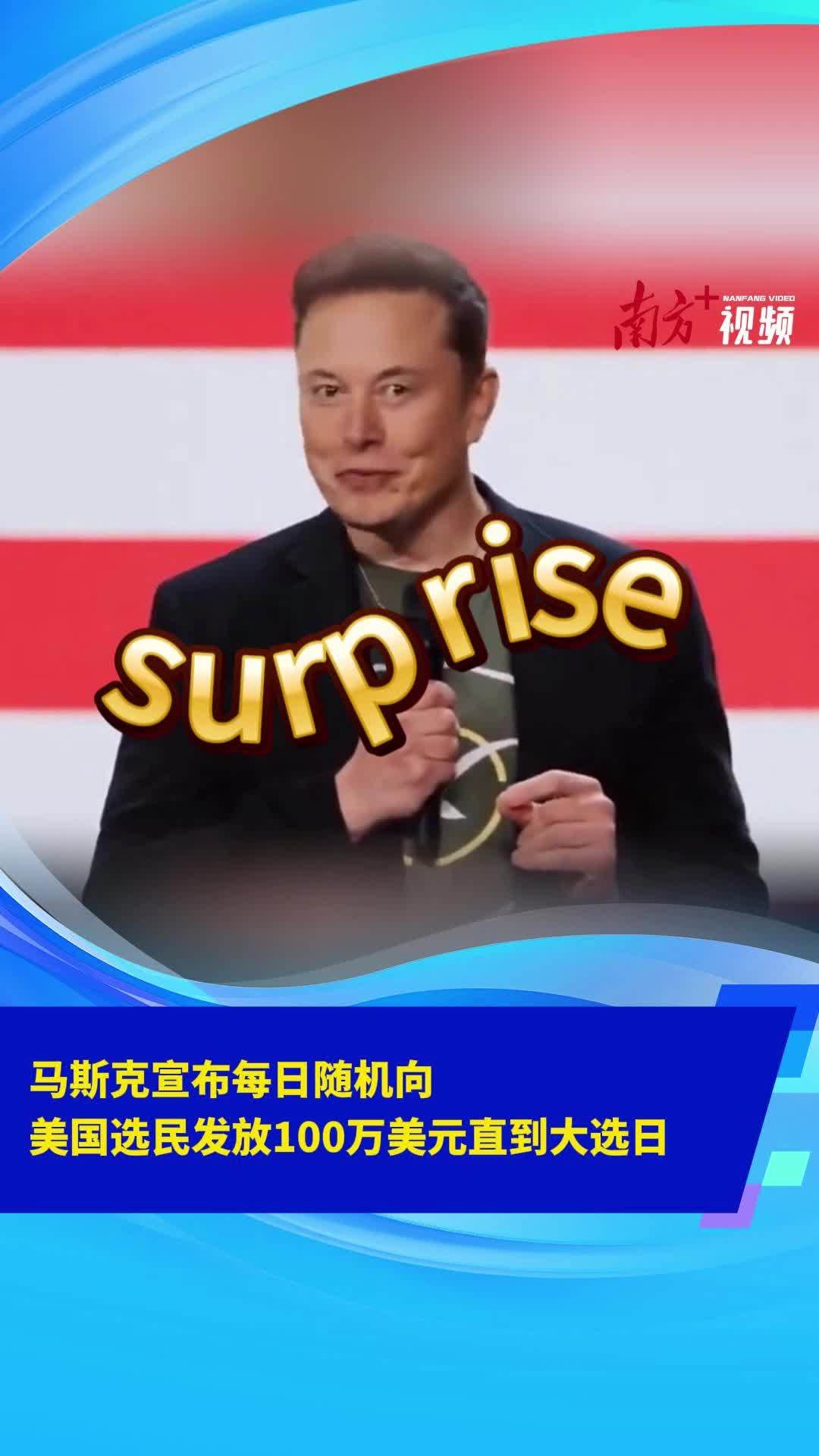 马斯克宣布每日随机向,美国选民发放100万美元直到大选日