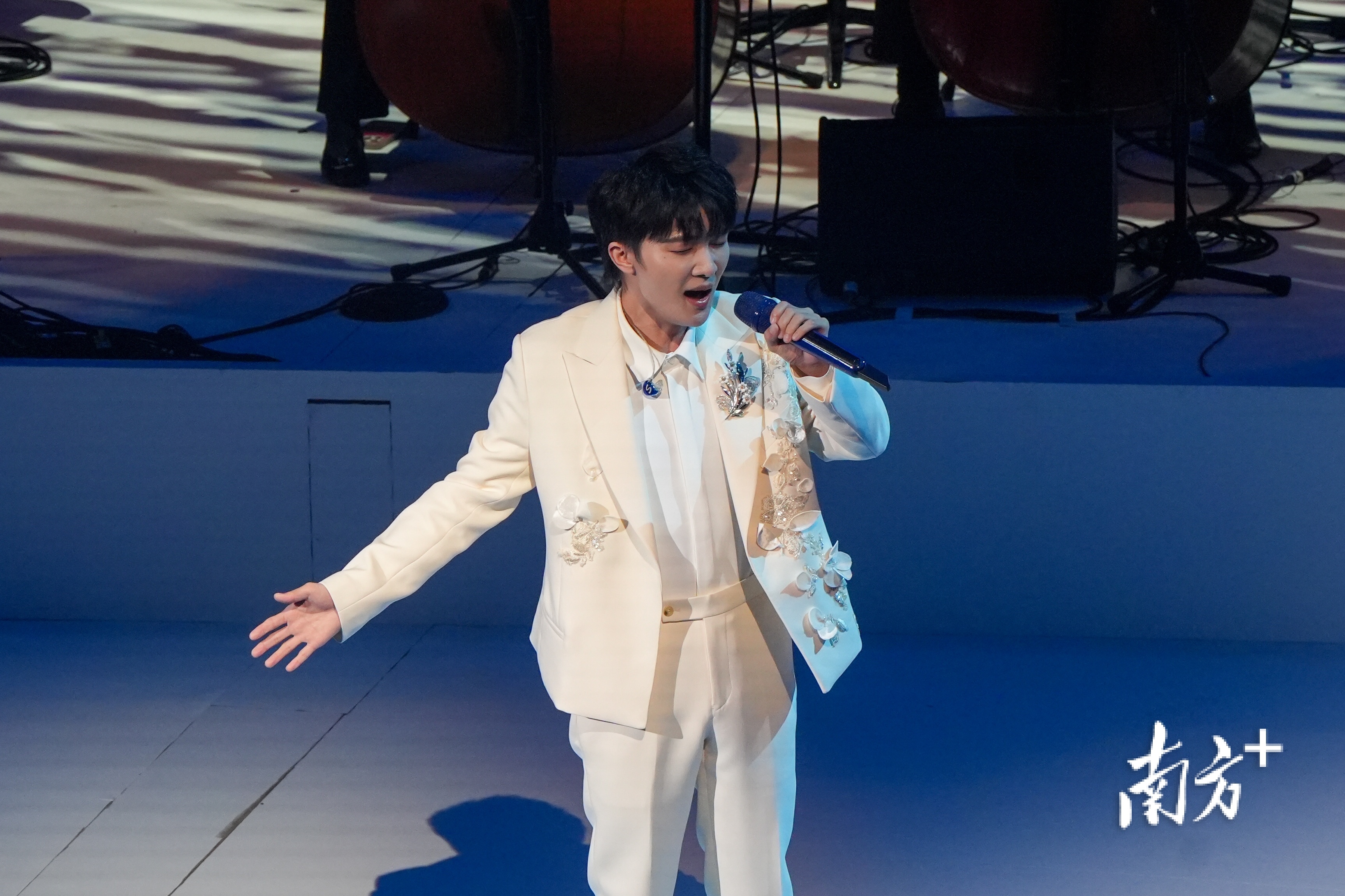 这是著名作曲家兼指挥谭盾12年磨一剑的新作。当晚,由谭盾执棒香港管弦乐团、广州交响乐团、深圳交响乐团及澳门乐团组成粤港澳大湾区文化艺术节管弦乐团,特别嘉宾流行歌手周深加入,为观众带来了一场奇妙的视听盛宴。