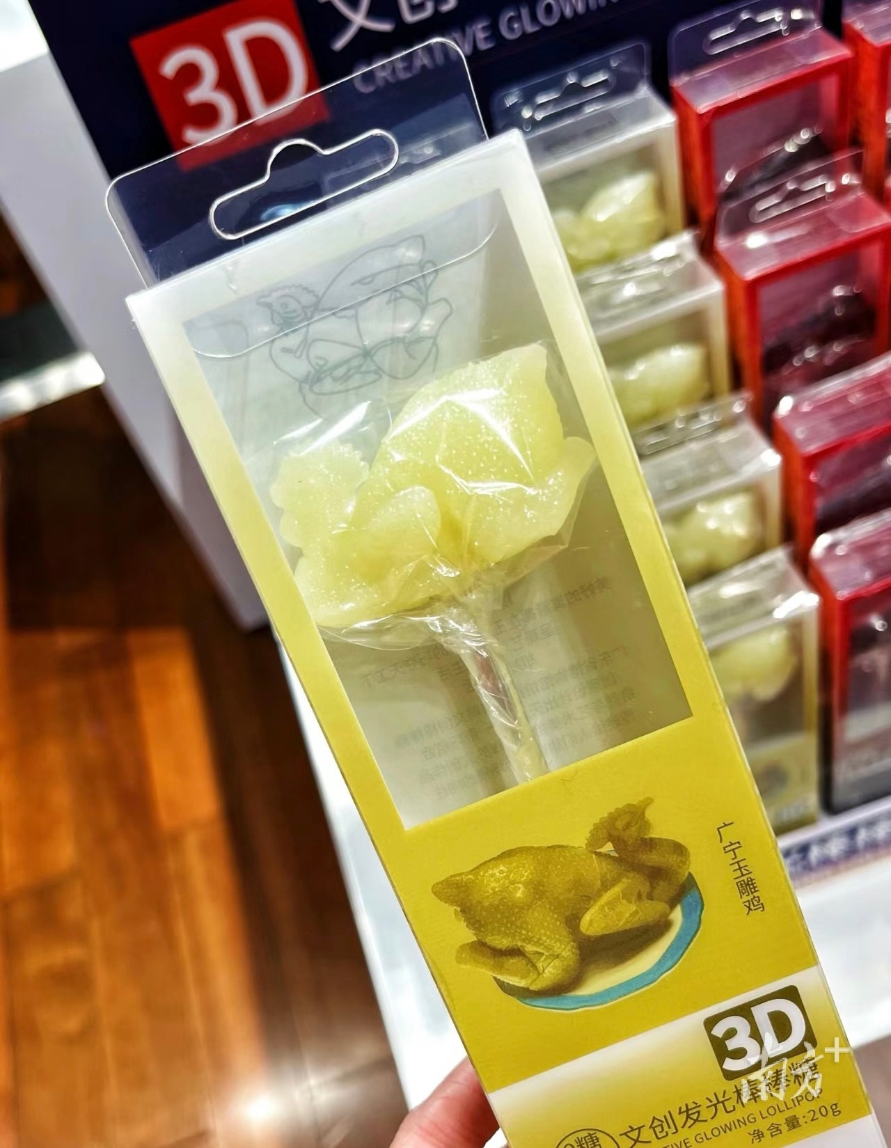 他介绍道,棒棒糖目前还在试卖阶段,美食文创与其他文创产品不同,有保质期等更加严格的要求,开发难度较大。比如这款“白切鸡”棒棒糖,从构思到落地经历了长达半年的时间。“糖和玉石不同,玉石的硬度更容易雕刻,糖做不到,需要开模,细节上也要细致复刻。”