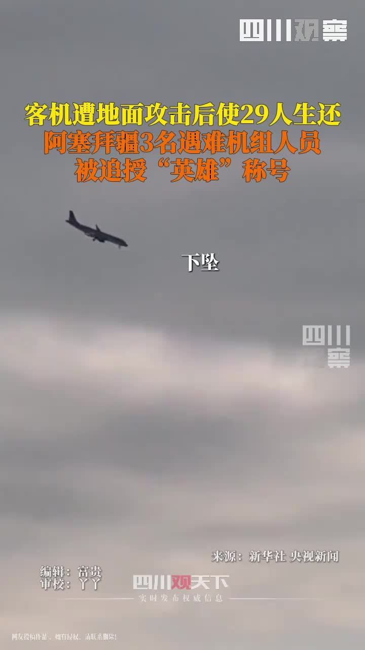 阿塞拜疆总统签署法令,追授坠机事故中3名遇难机组人员“英雄”称号