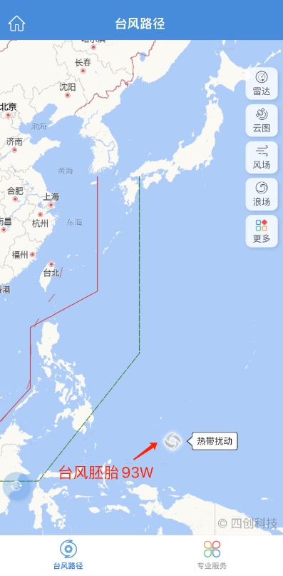 据实时台风路径消息,台风胚胎93W发展酝酿中,未来2到3天,这个热带扰动将发展增强,可能在本周末发展为今年1号台风“艾云尼”。