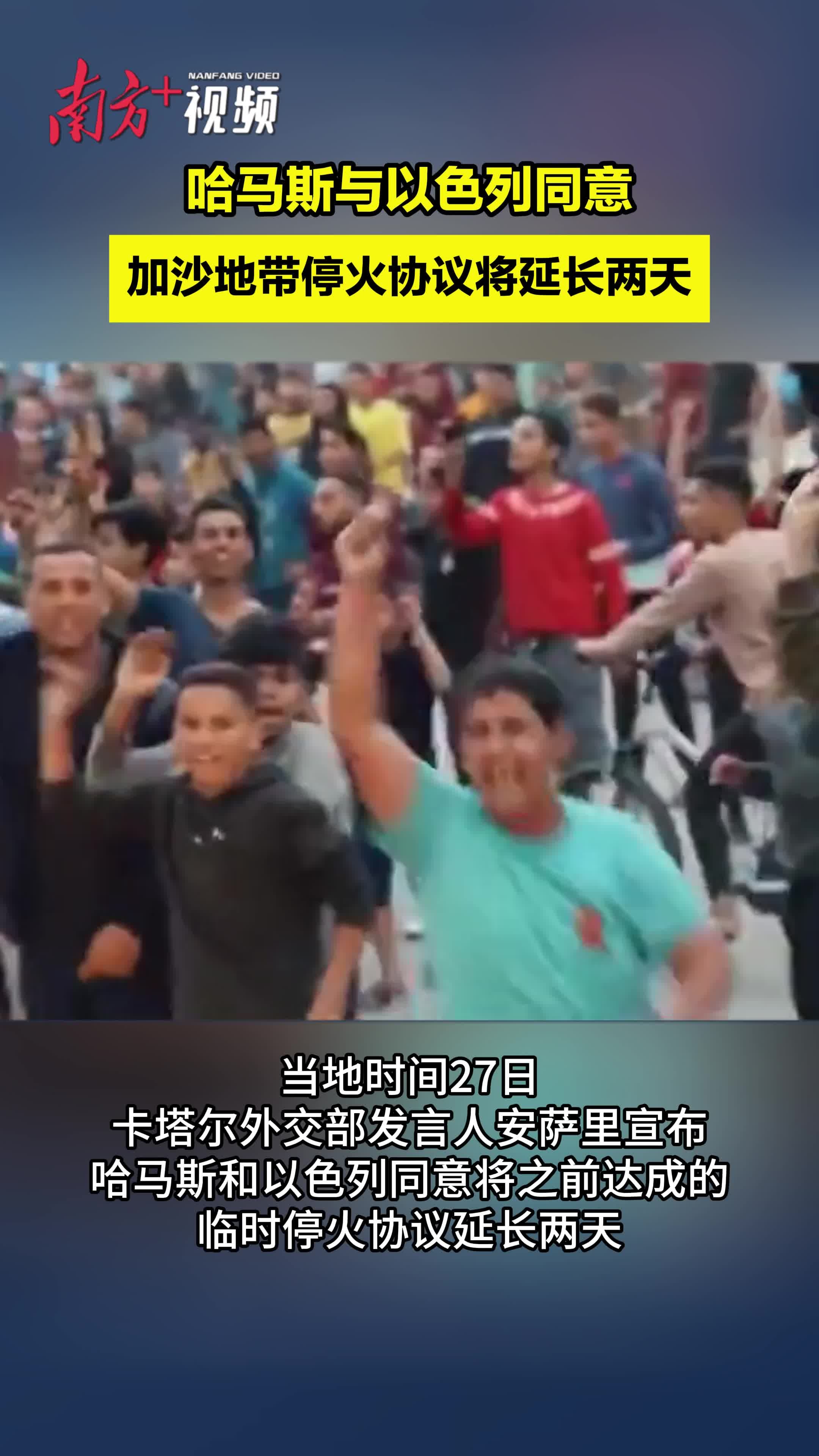卡塔尔外交部27日发表声明说,巴勒斯坦伊斯兰抵抗运动(哈马斯)与以色列已同意将加沙地带人道主义停火期限延长两天。哈马斯同日发表声明说,哈马斯同埃及和卡塔尔达成协议,将加沙地带停火期限延长两天。最新情况>>