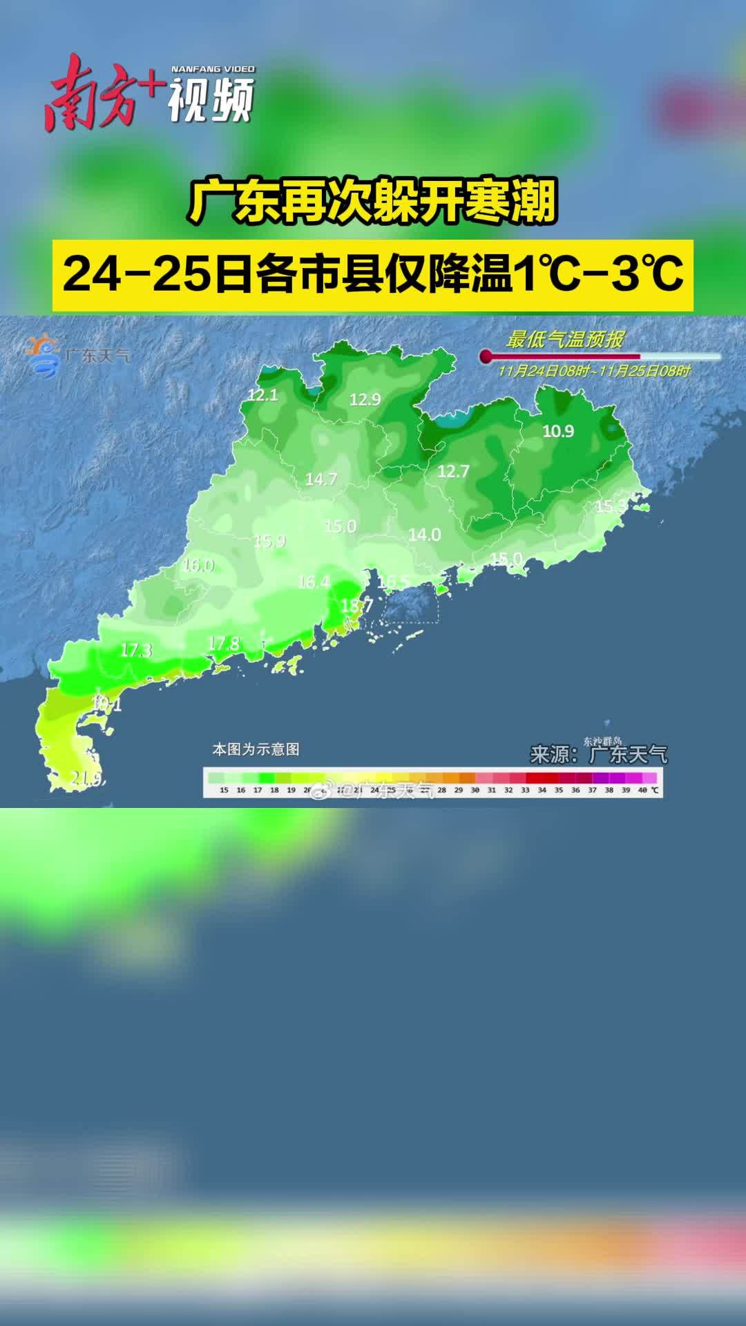 广东再次躲开寒潮,24-25日各市县仅降温1℃-3℃
