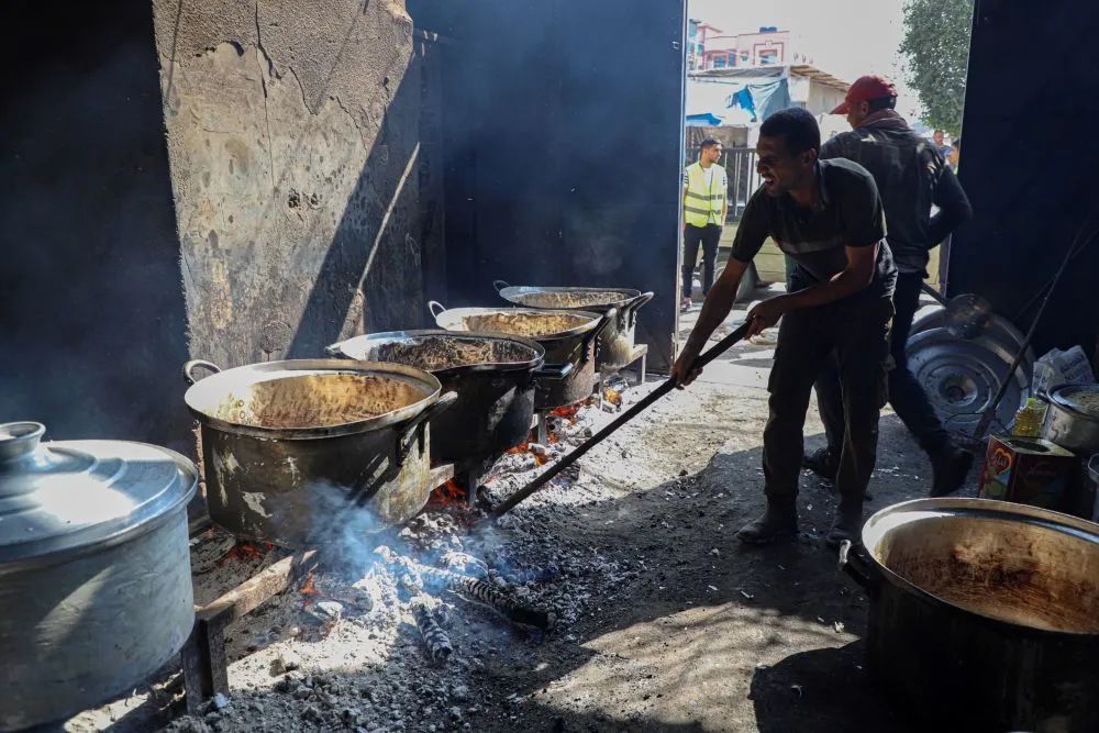 11月3日,在加沙地带南部城市拉法,人们在煤气供应中断后用柴火做饭。目前加沙地带燃料严重短缺。新华社发(里泽克·阿卜杜勒贾瓦德摄)